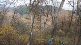 落ち葉絨毯と紅葉の気持ちの良い吊尾根