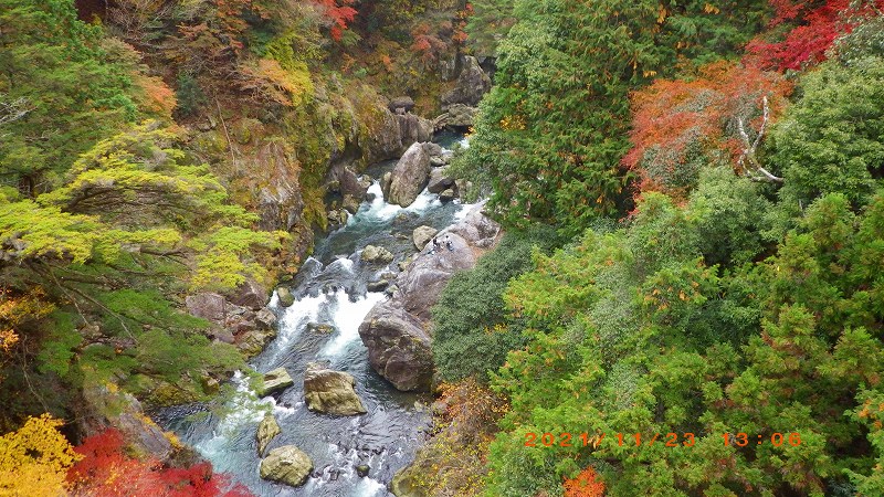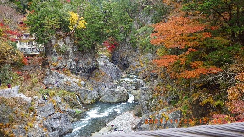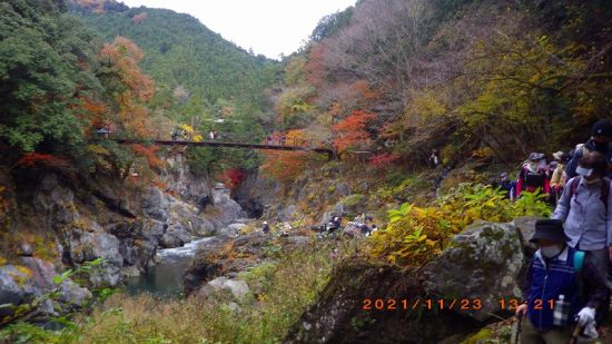 奥多摩駅までもう少し「数馬橋」にて お天気に恵まれ紅葉もピーク 素晴らしい山行でした。矢澤