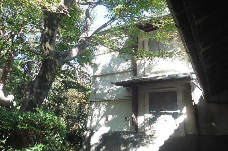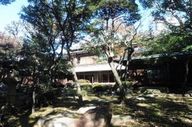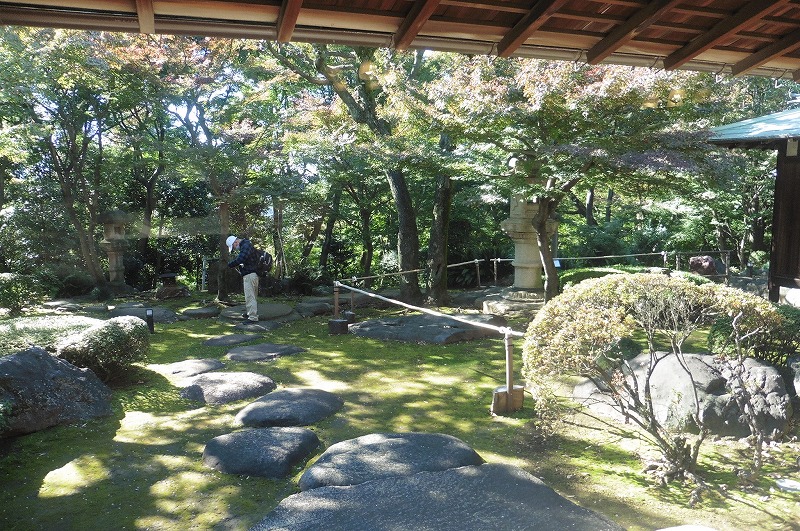 旧朝倉家住宅の庭園は、崖線という地形を取り入れた回遊式庭園で石灯籠など添景物が多く配置されています。