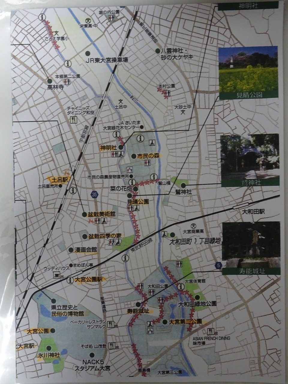 コース:JR宇都宮線 土呂駅 10時集合→大宮盆栽美術館→蔓青園→盆栽四季の家→芙蓉園→大宮公園大池(昼食)12:00~12:40→大宮公園内散策→氷川神社→JR大宮駅14:15 解散