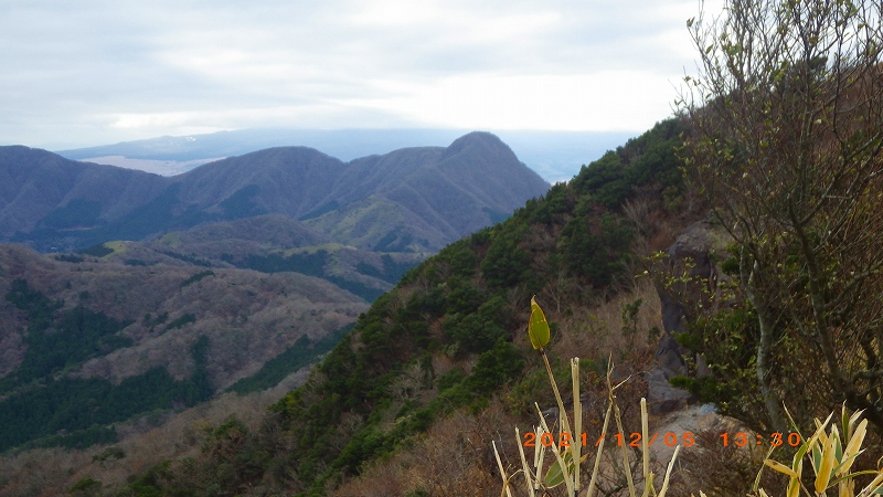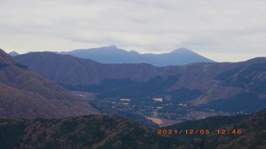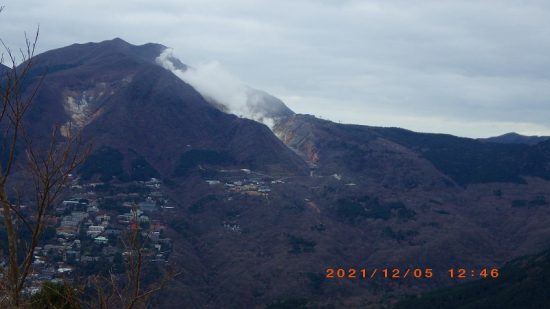 大涌谷 眼下の仙石原と箱根外輪山その向こうに愛鷹連山 奥右の金時山 明神ケ岳山頂 下山開始