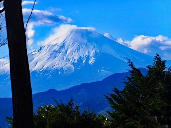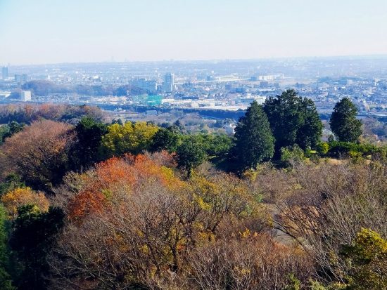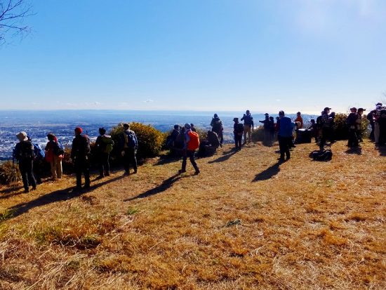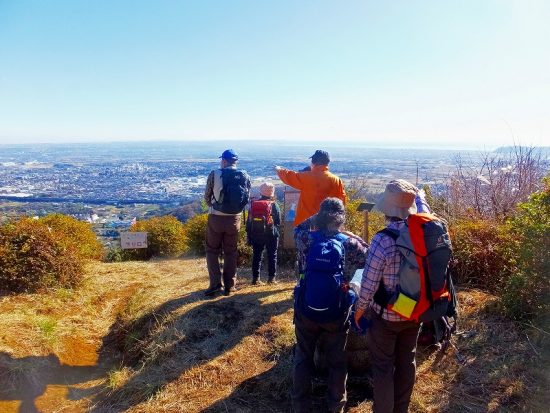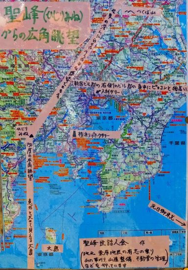 聖峰の山頂広場に立つと、眼下に相模平野の街並みと江の島が見える。
