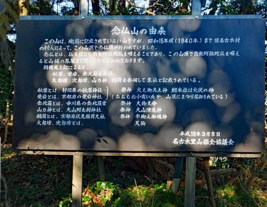 昭和15年(1940年)まで旧名古木村の村人によって、この山頂で念仏講が行われいた。