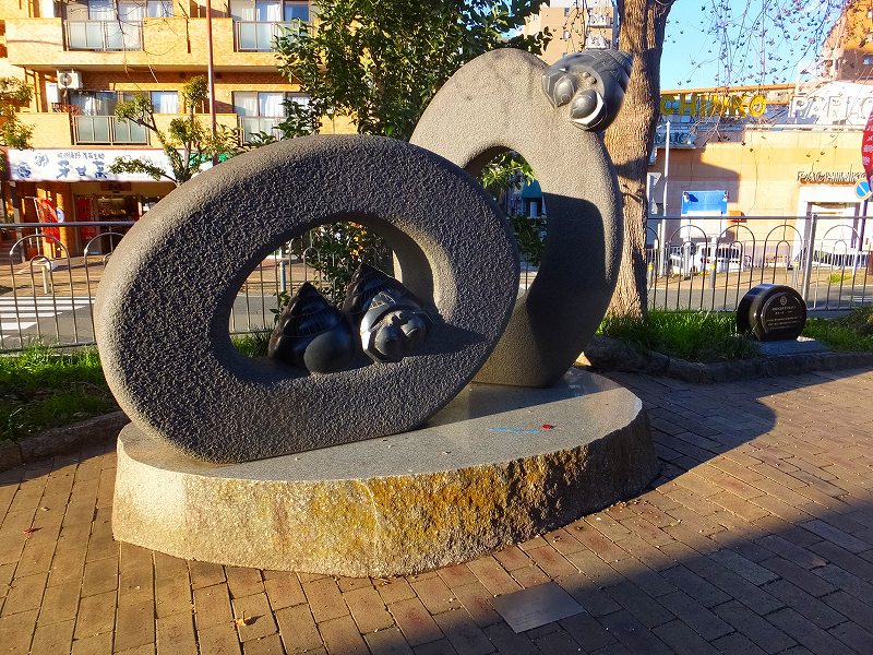 因みに、この彫刻のタイトルは「宿借り(おかえりなさい)」です。温泉地のヤドカリには「鶴巻温泉へ泊まりに来てね」のメッセージが込められている。