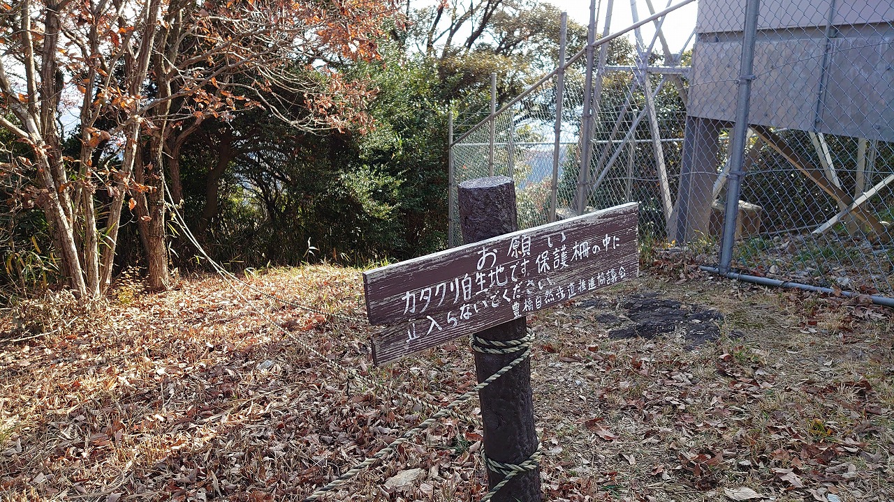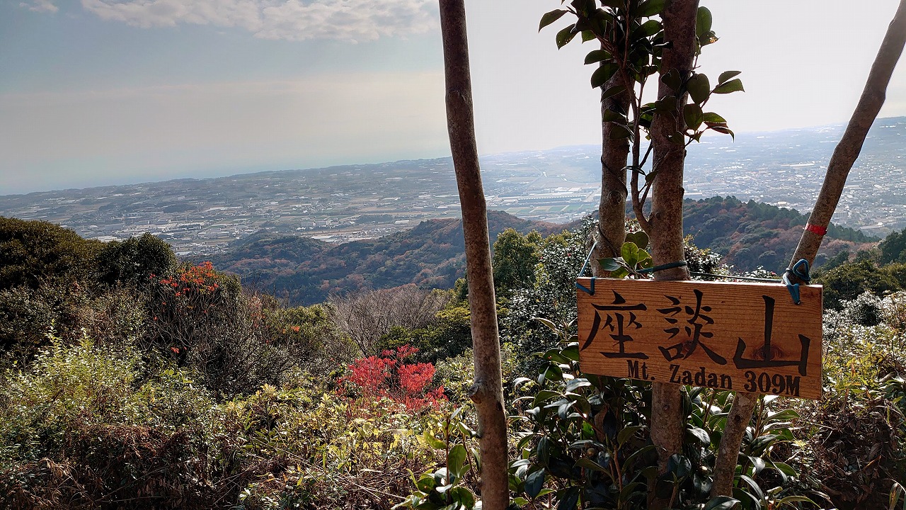 雲谷山はカタクリが保護されていた。 座談山。遠方は太平洋。