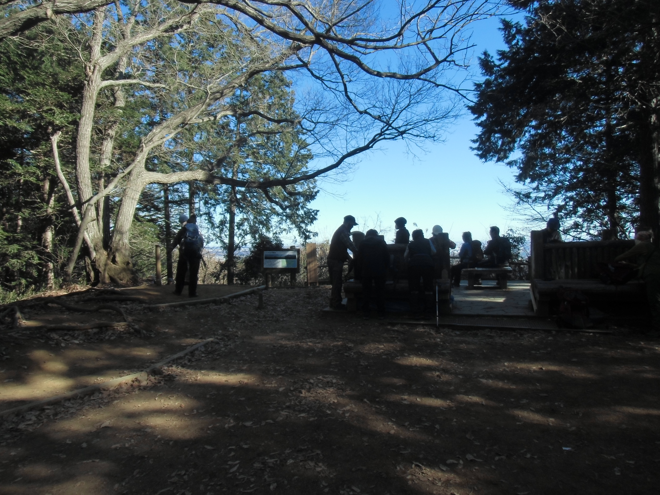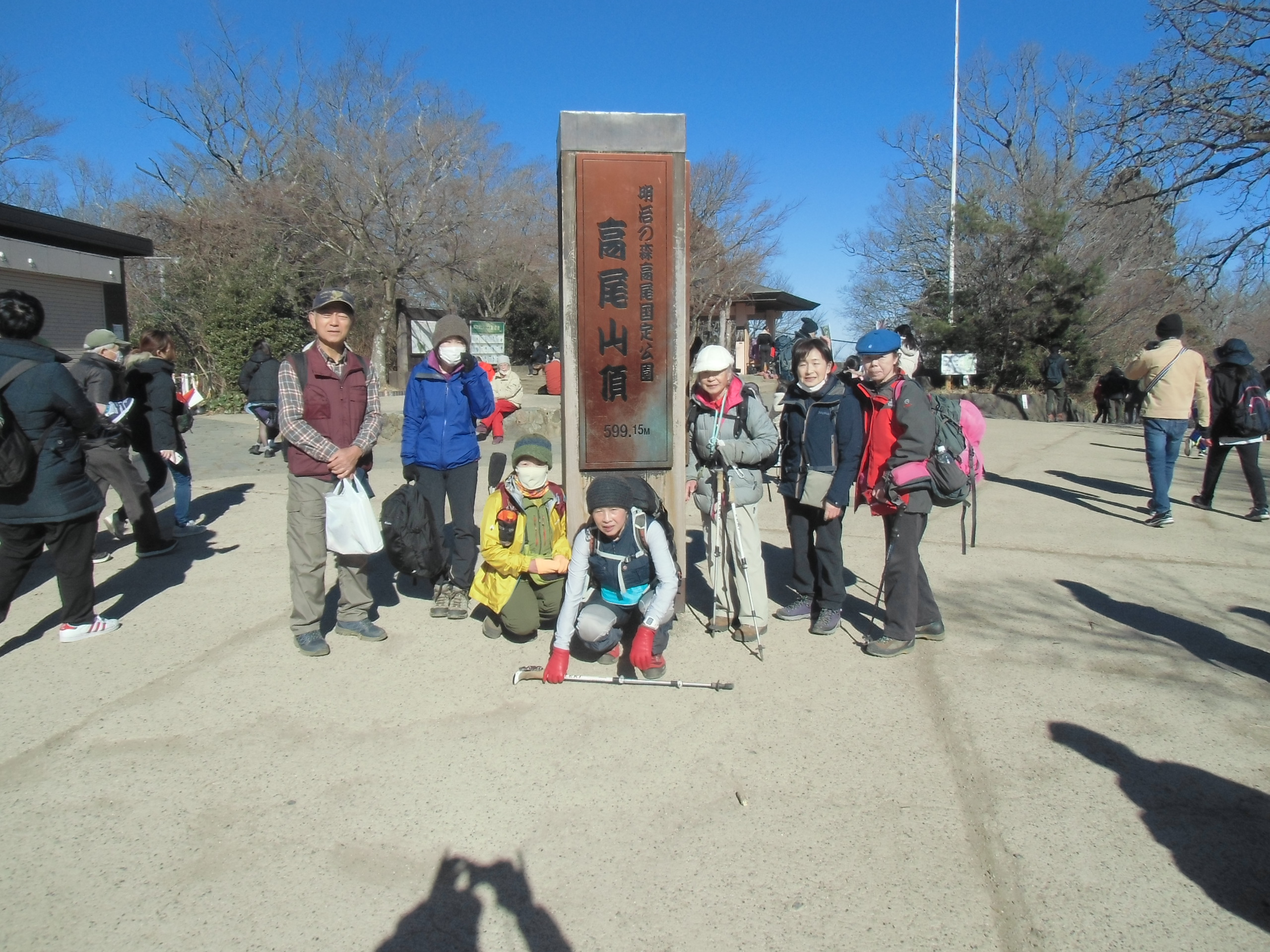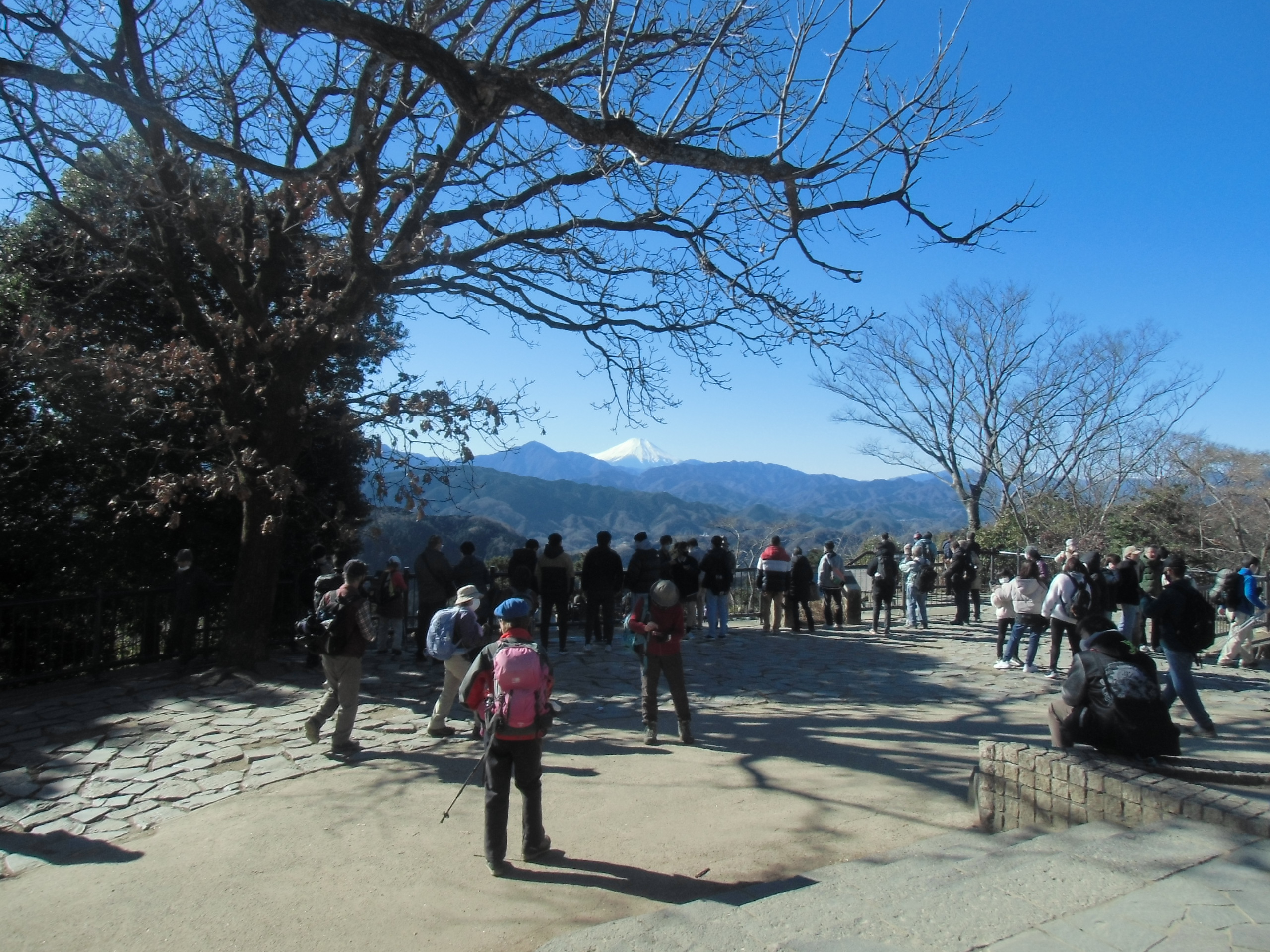 冷え込みの厳しい高尾山口駅に集合でしたが南面の稲荷山コースは日差しが暖かで心地よく歩くことが出来ました。山頂は意外に人出が少なくゆったりと食事を済ませ……薬王院まで下ってくると参拝の方が列を作って順番待ちの状態でした。参道脇の誰もいない林野庁の施設で休憩をとり琵琶滝コースより下山。お疲れ様でした。