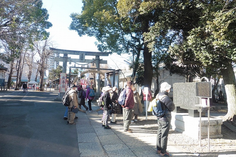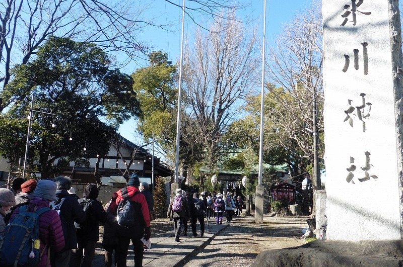 JR北千住駅(10:30)→千住本氷川神社(大黒天)→学びピア21→氷川神社(布袋尊)→千住公園(11:40~12:30)昼食→元塾神社(寿老神)→お化けエントツ(13:00)→墨堤通→桜木町公園→千住神社(恵比寿天)→八幡神社(毘沙門天)(14:00)→稲荷神社(福禄寿)→氷川神社(弁財天)解散(14:35)
