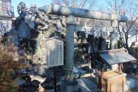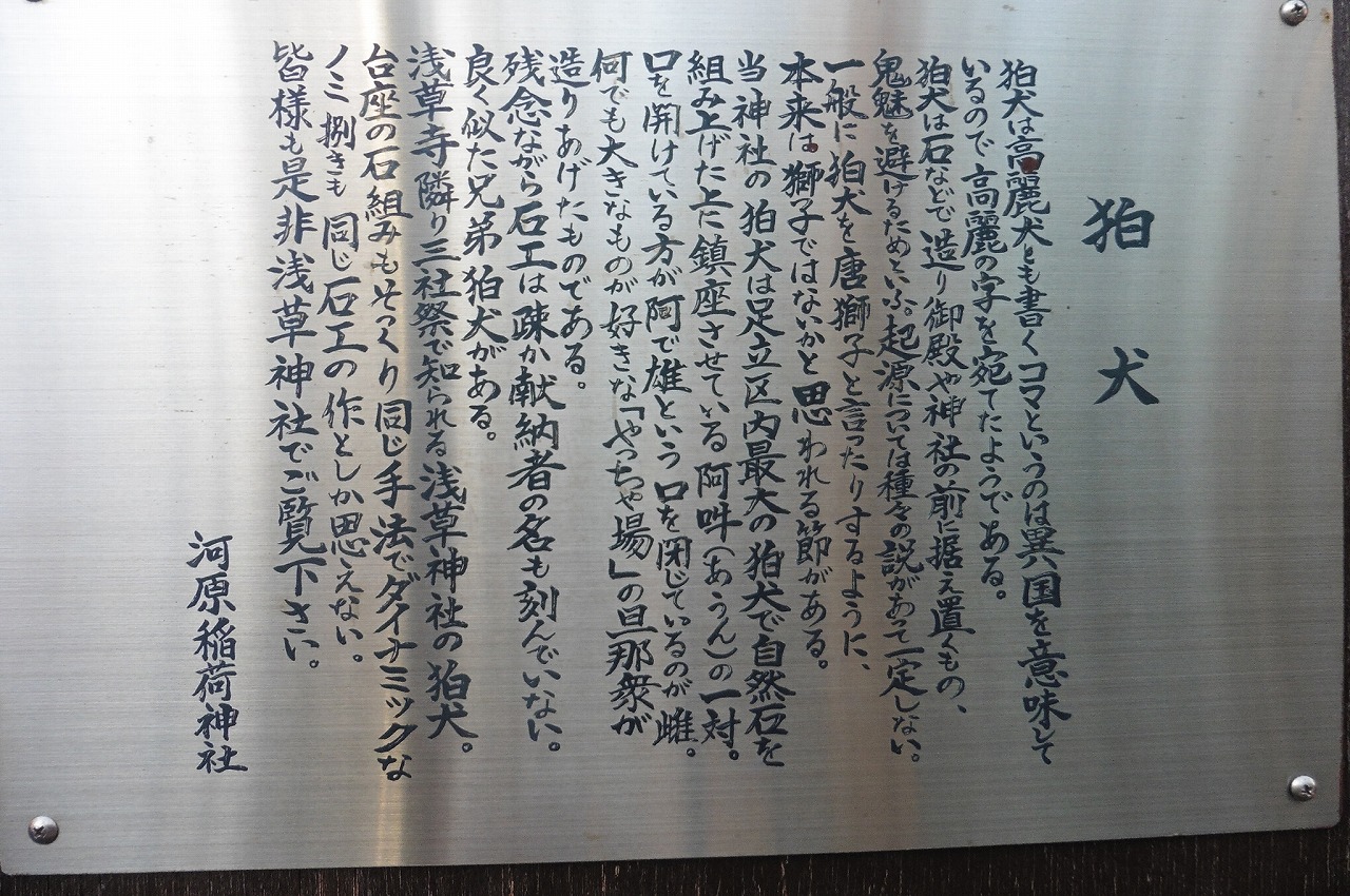 狛犬 足立区内最大の狛犬で自然石を組み上げた上に鎮座している