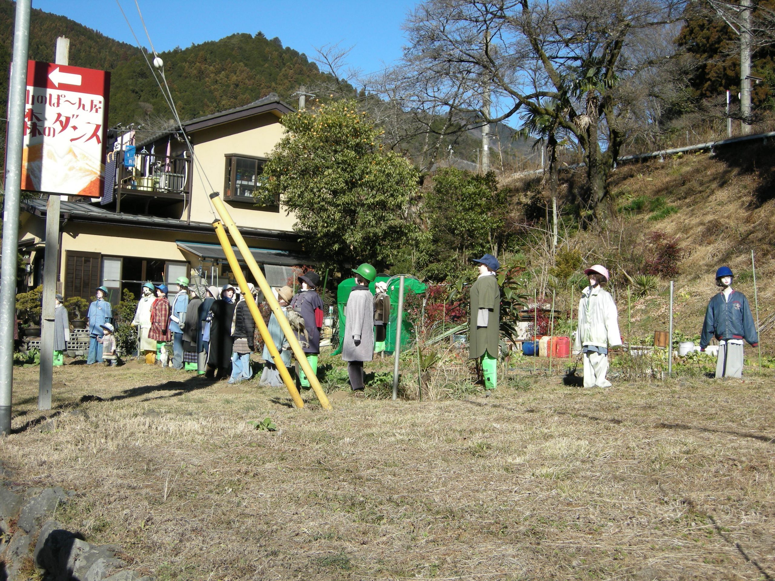 道路沿いの案山子が見送り?