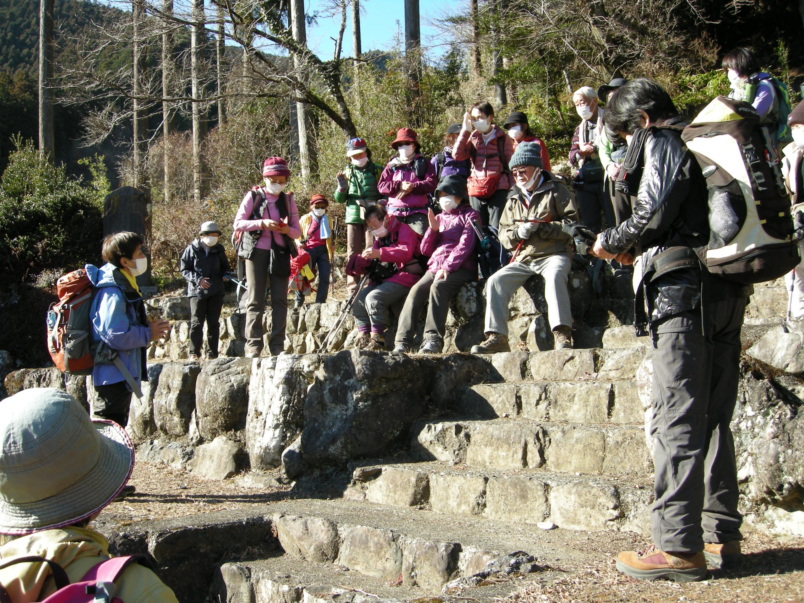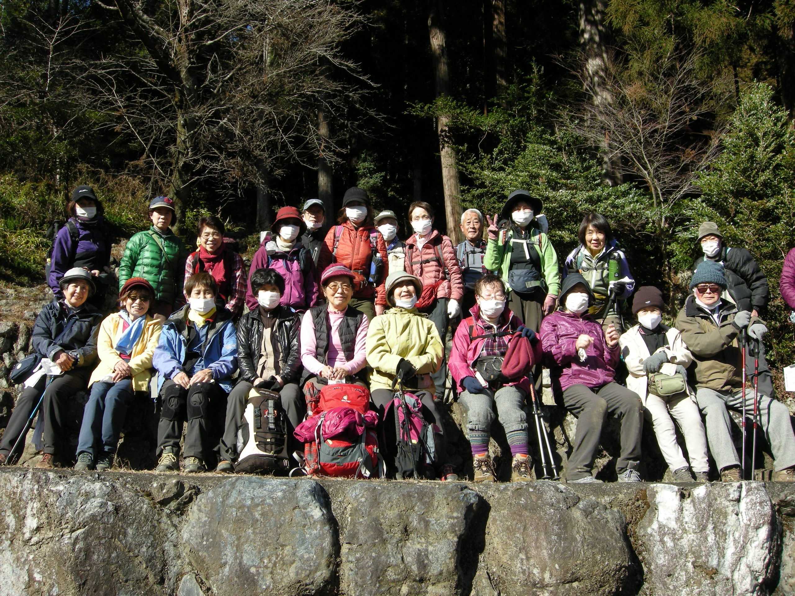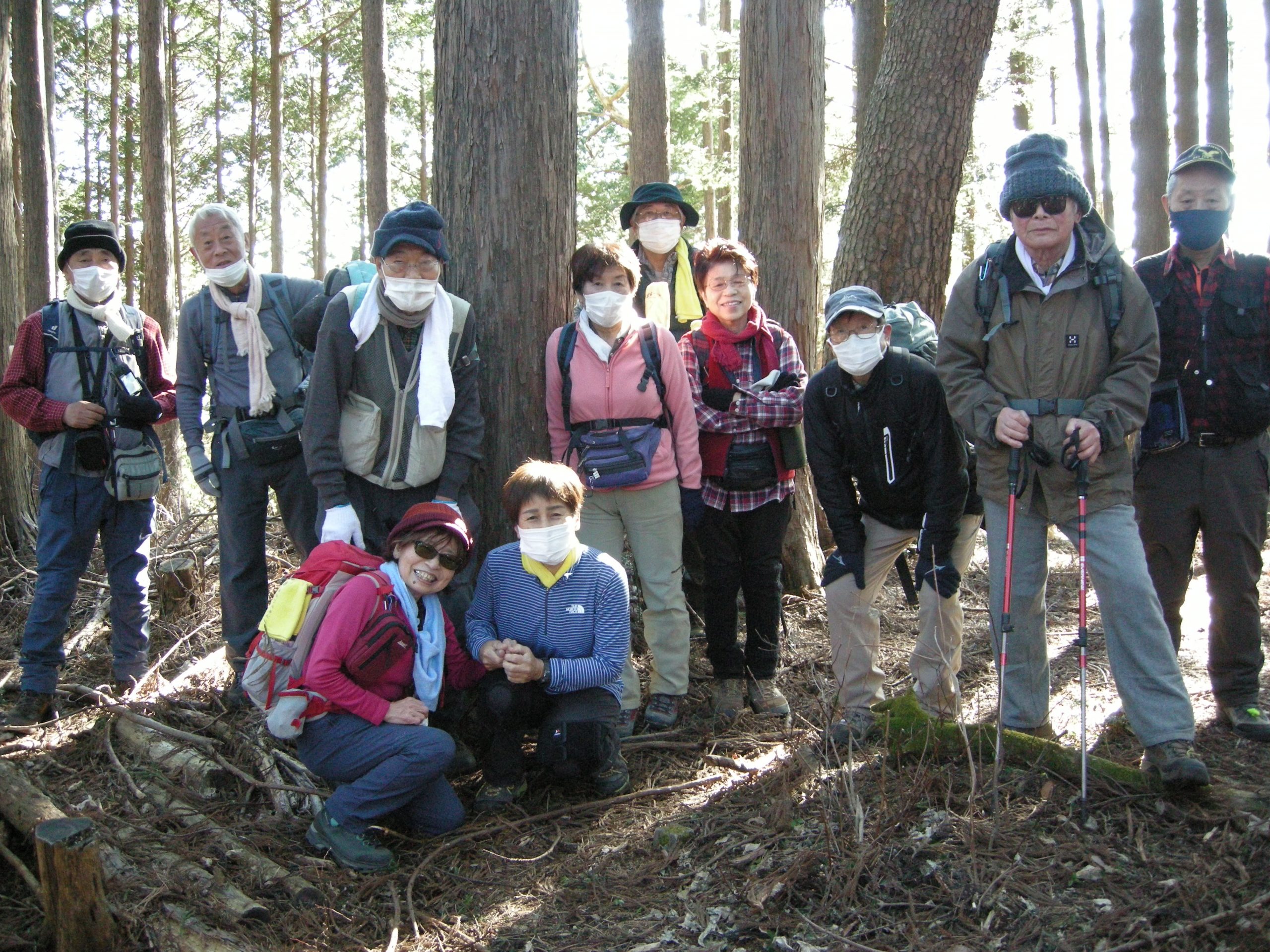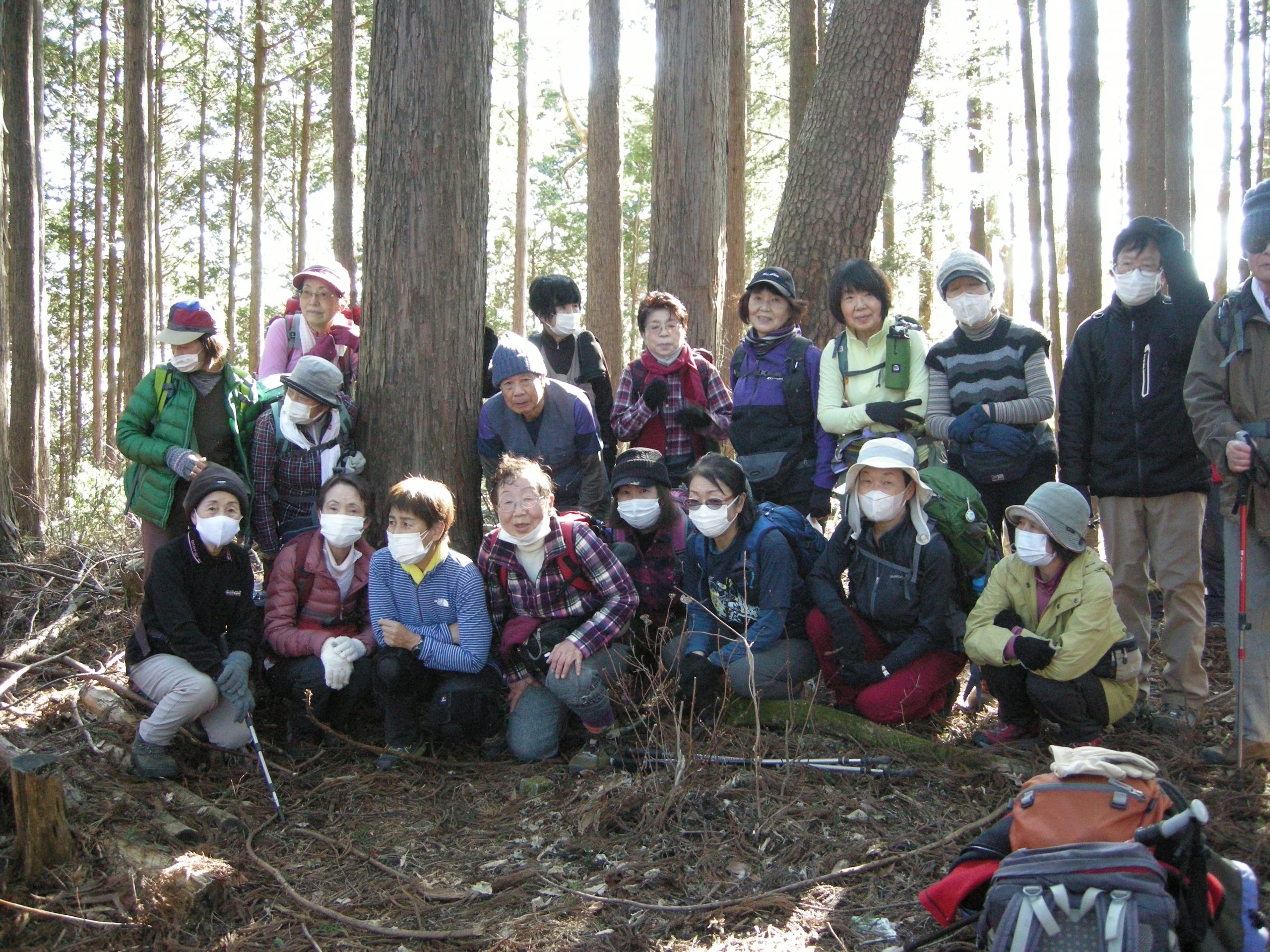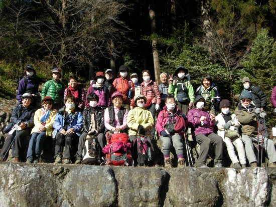 ノ神で単独の男性に会っただけで静かな尾根歩きを楽しみました。風もなく暖かな日差しの中、気持ち良く歩けました。歩き足りない方もいらしたと思いますがその分ランチタイムをゆっくり楽しみました。今日も皆様と一緒に楽しい山行が出来ました事に感謝致します。