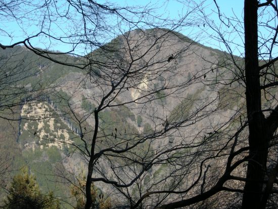 杉の殿山付近から雑木林の中から姿を見せる川苔山