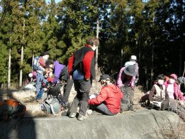 大根山ノ神で、暖かい日差しの中昼食タイム