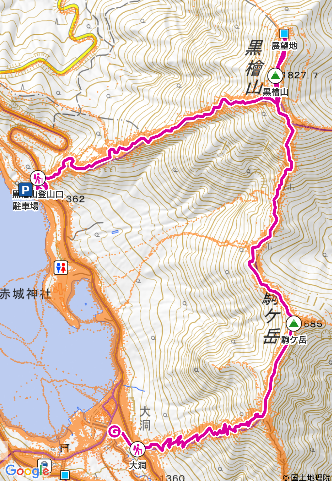 10:40黒檜山11:45ー11:50展望台(昼食)12:12-12:20黒檜山大神12:25ー