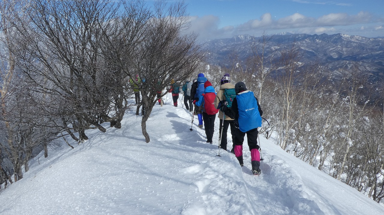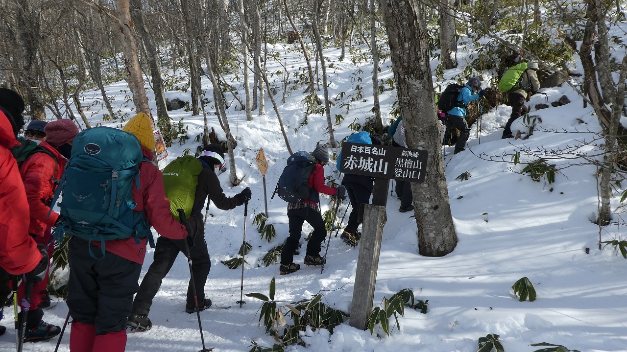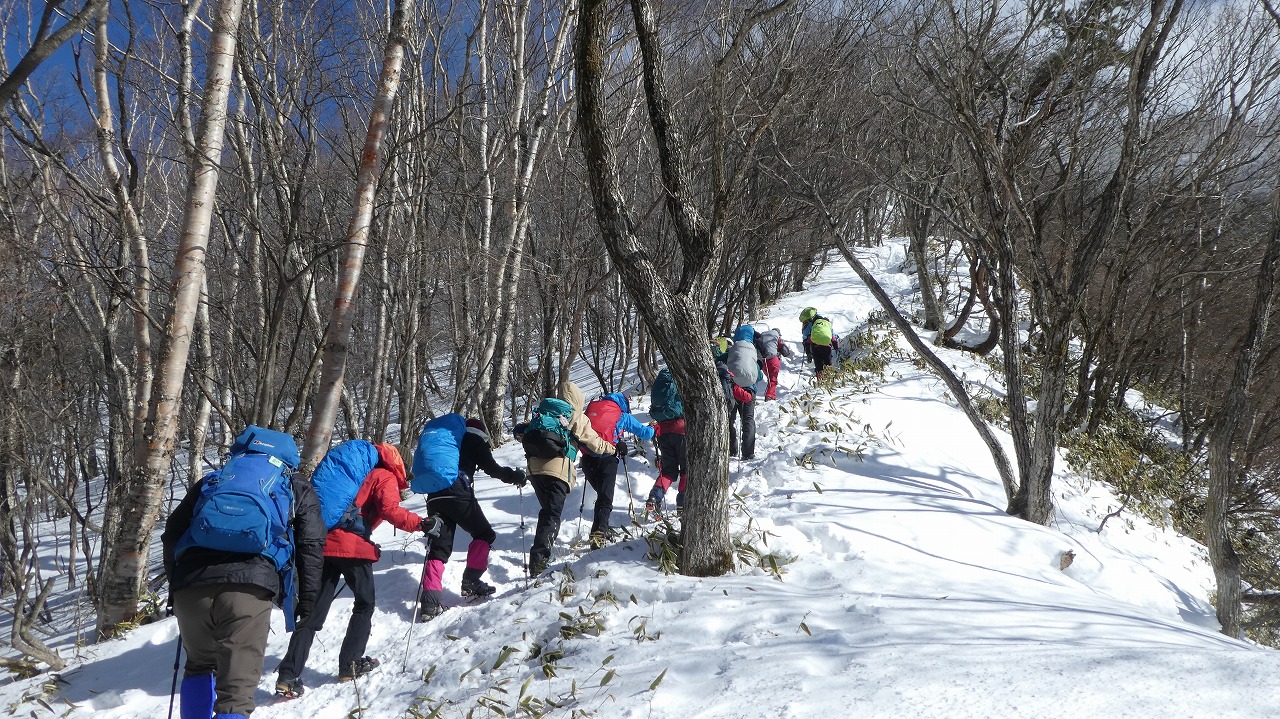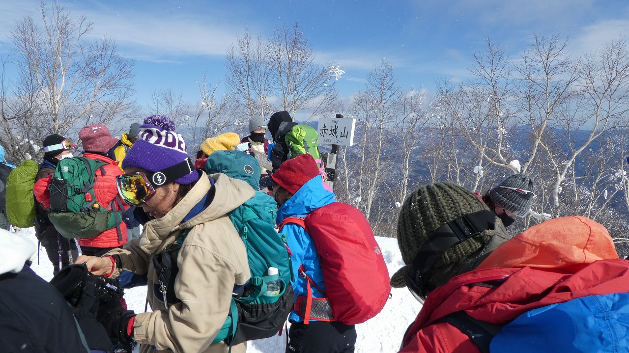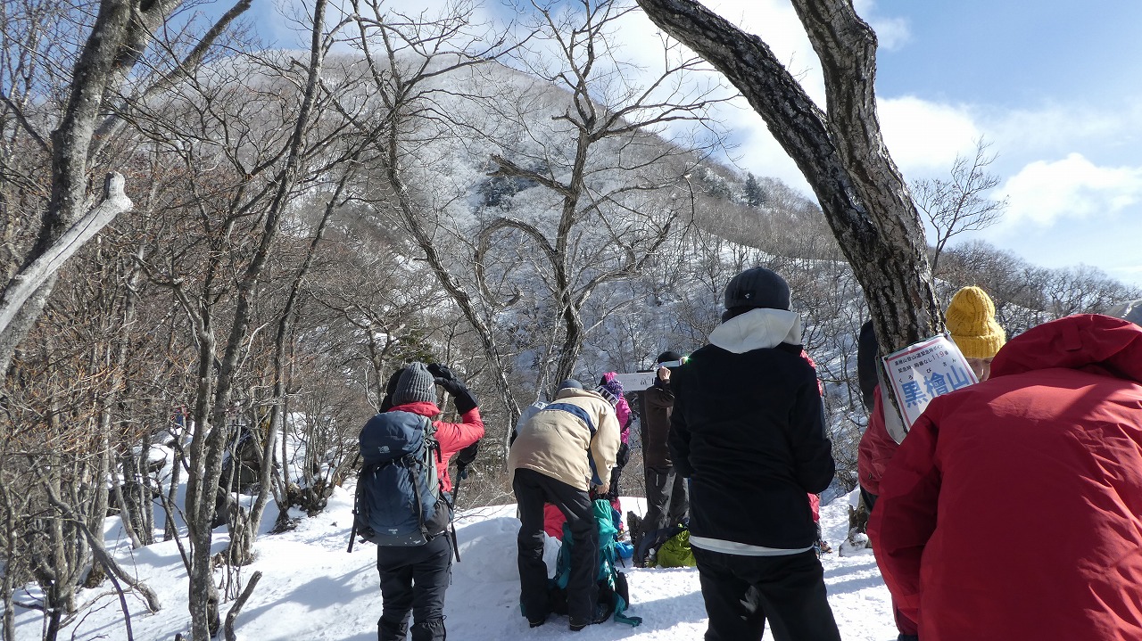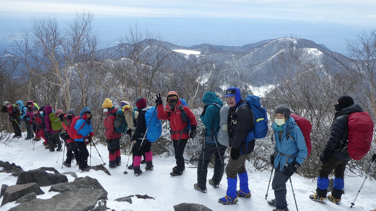 「1月29日の黒檜山の積雪は90cm、頂上の気温は日中平均-8.3℃。晴れていましたが風も強く体感的には厳しい1日だったと思います。展望は7年前と変わりなく、地蔵岳の遠方に富士山もありました。雪初経験の方々の感想をお聞きしたかったのですが、現状況下ではバスの中も静かにせざるを得ず、それが残念でした。短いような長いような1日でしたがお疲れ様でした。