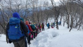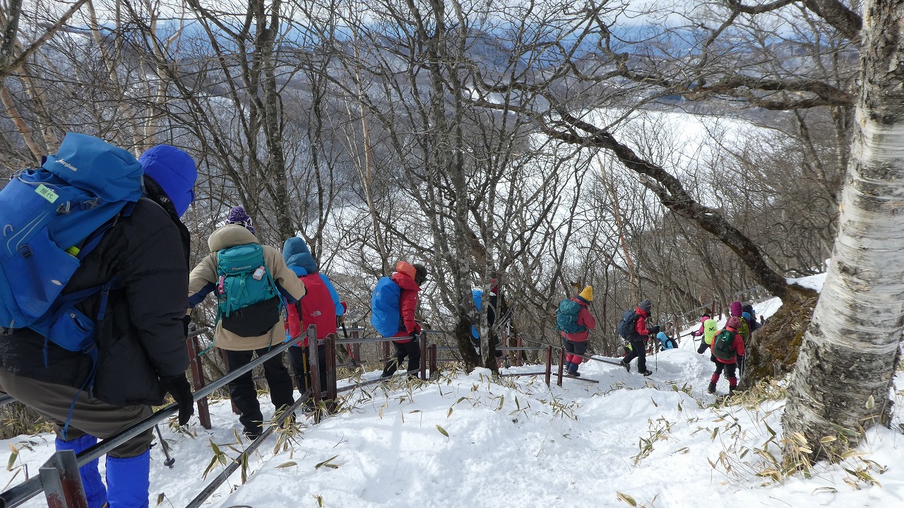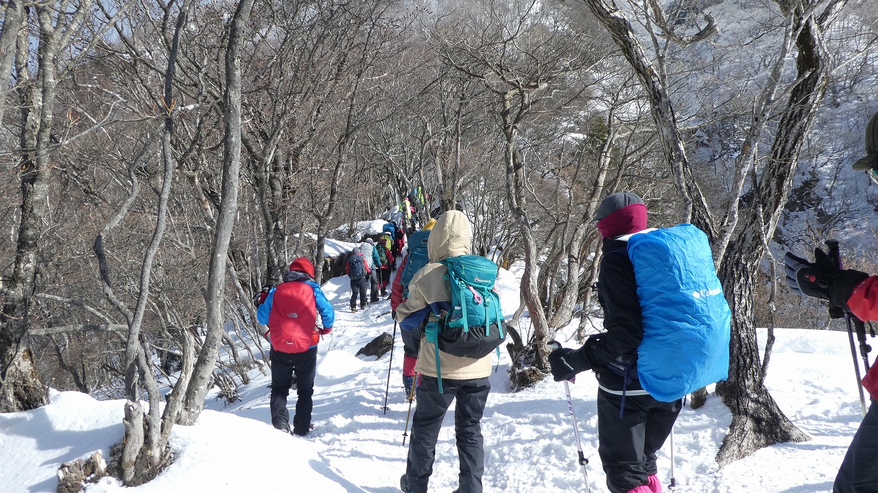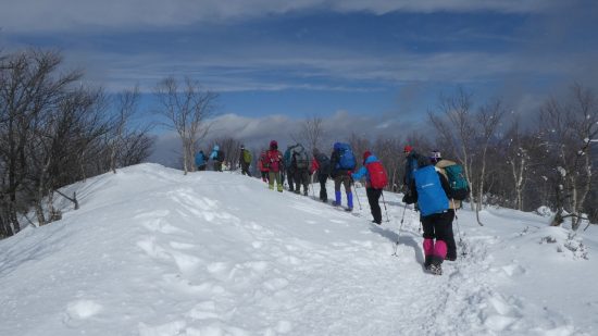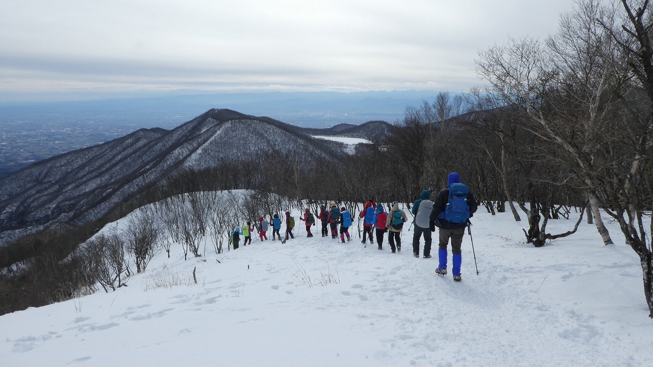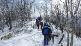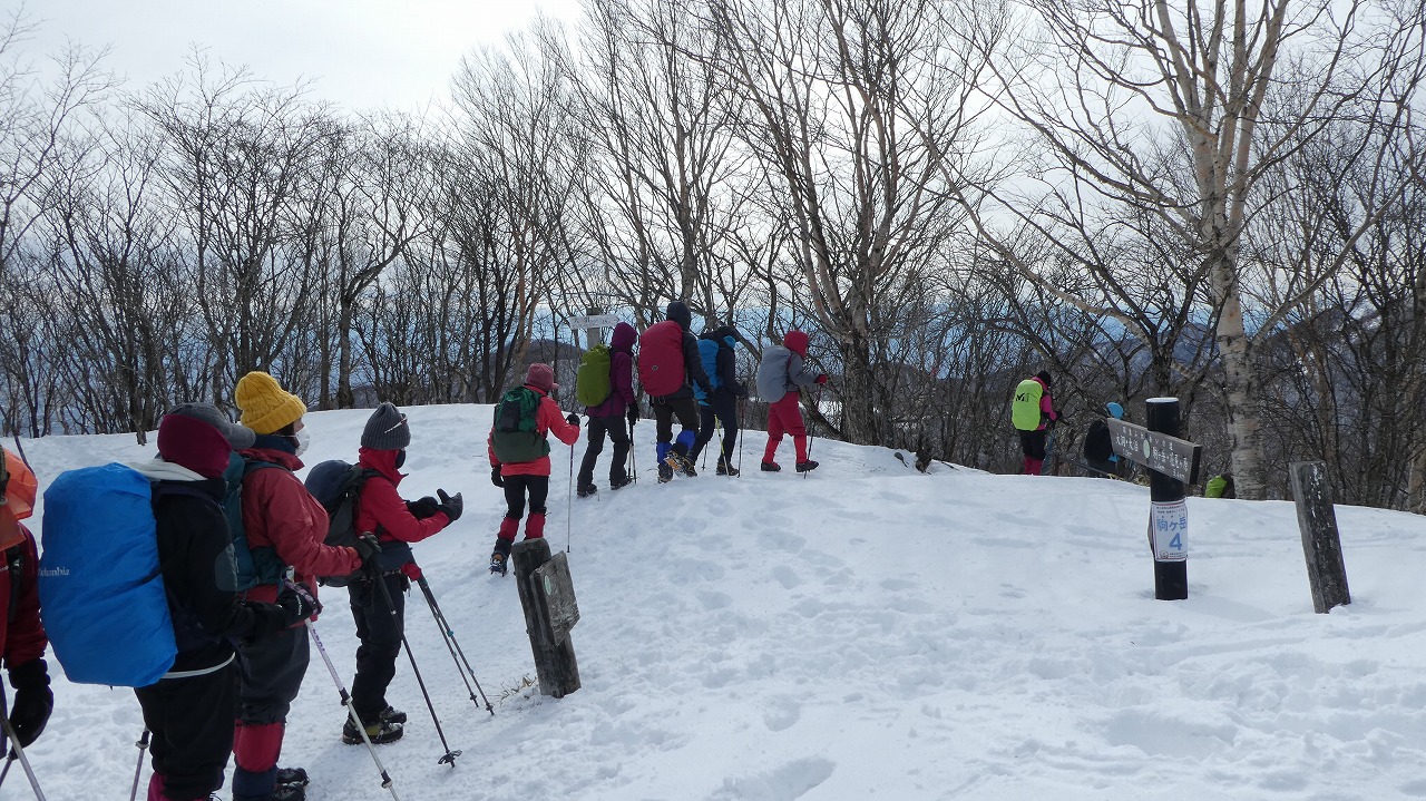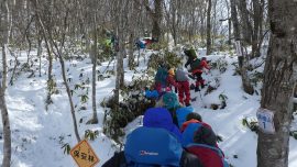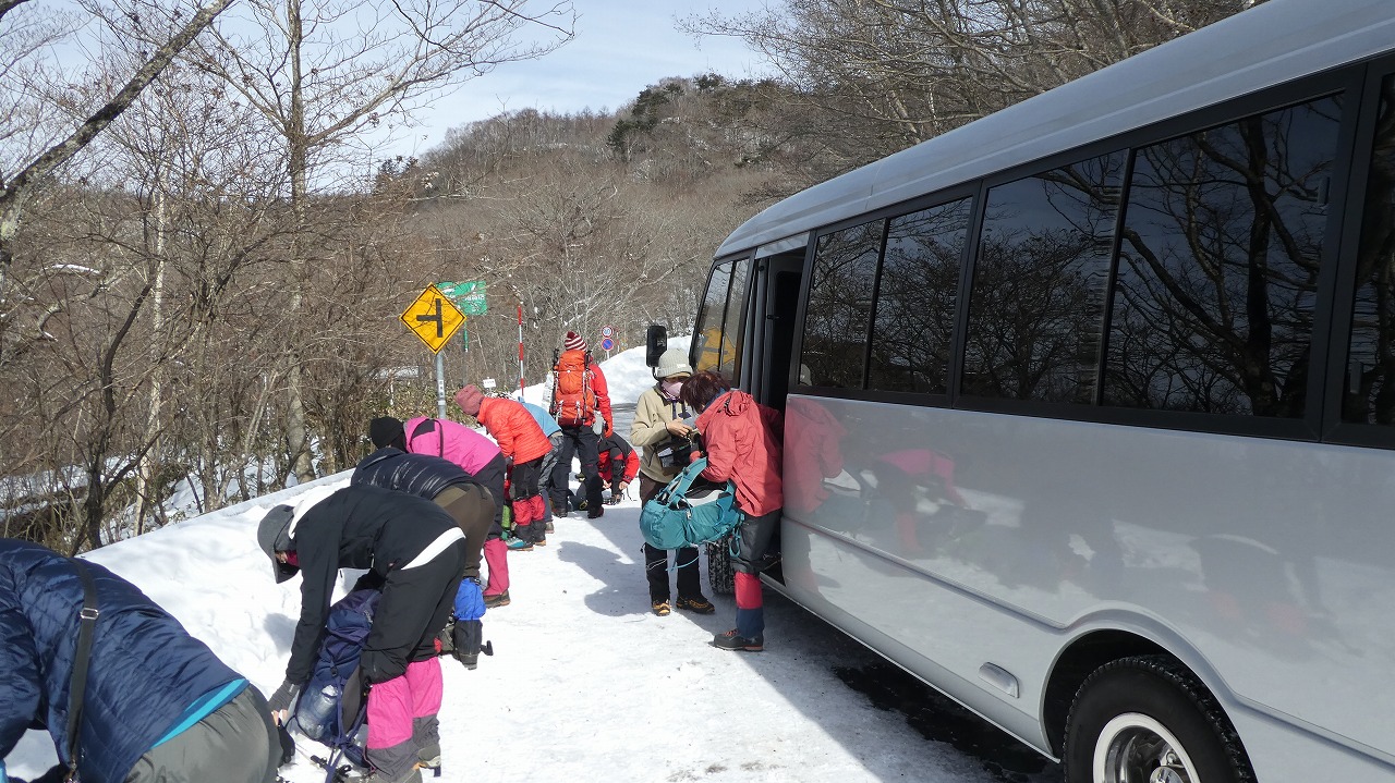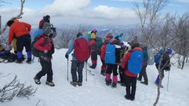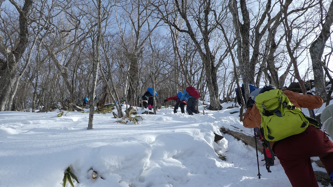 「1月29日の黒檜山の積雪は90cm、頂上の気温は日中平均-8.3℃。晴れていましたが風も強く体感的には厳しい1日だったと思います。展望は7年前と変わりなく、地蔵岳の遠方に富士山もありました。雪初経験の方々の感想をお聞きしたかったのですが、現状況下ではバスの中も静かにせざるを得ず、それが残念でした。短いような長いような1日でしたがお疲れ様でした。