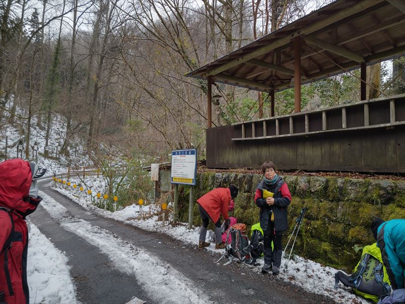 リーダーの挨拶 山行中の注意及び山道の凍結等状況によりコース変更ありとの説明