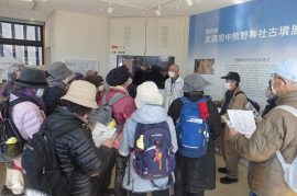 武蔵府中熊野神社古墳展示館 ガイドさんの説明を興味深く聞いています