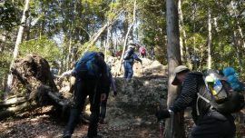 山川リーダー、スタッフの皆様、お疲れ様でした。全国にご当地富士山はありますが、奥武蔵に合ったのかな?という疑問が見事に晴れました(当日の天気のように)山頂の祠は浅間神社、ということは富士講の方々が1年1回お山開きに登山する山なのですね。しかも高麗側から詳細地図の破線ルートの急登、急下降を経て、物見山から登って行くと、1合目からお山登山したような達成感がありました。お山(富士)を登り浅間神社に詣でることで、富士ノ宮の御本社を詣で、富士山に登山が叶うと言われています。大変由緒ある登山をありがとうございました。