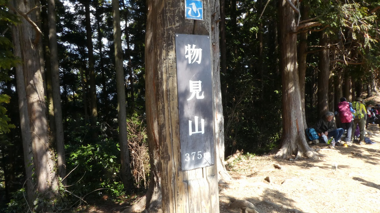 出発。尾根を淡々と登り物見山へ。いつもながらの沢山のハイカーがお昼休みしていました。