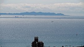 津久井浜海岸で一休み。喉を癒しました。近くで、ウインドサーフィンをしていました。