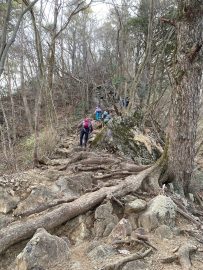 急な岩稜帯を登っていきます。時々、笑い声がするぐらい、皆さん、元気に歩かれていました。