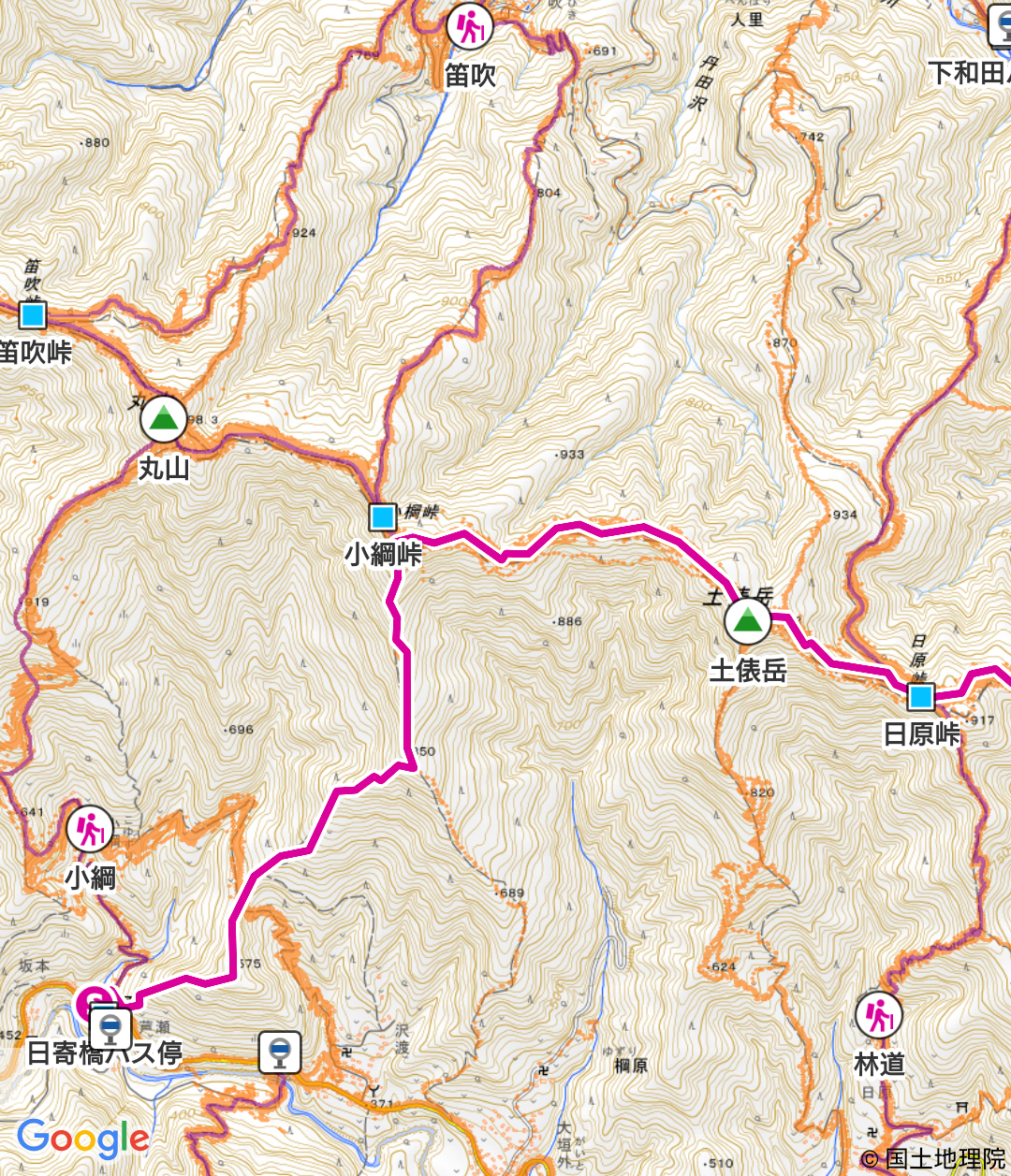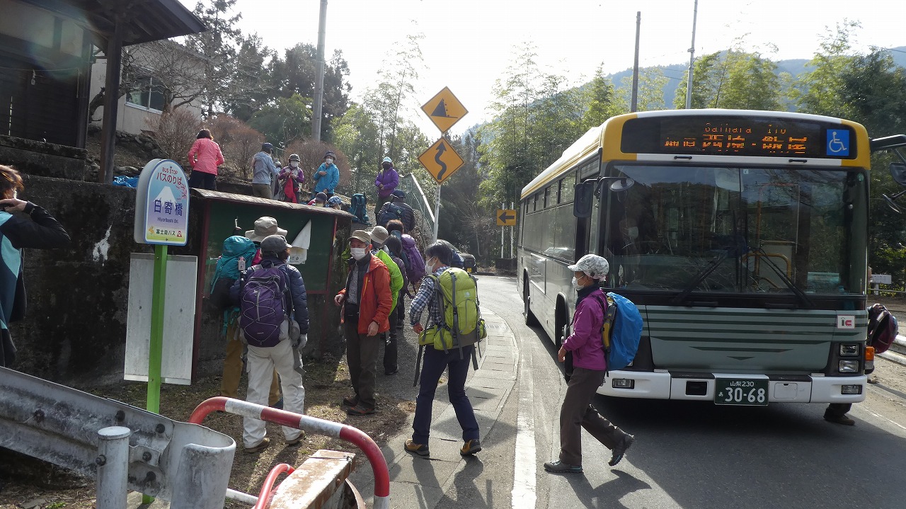 コース :上野原駅8:35-(バス)-9:15日寄橋バス停9:25ー9:52日武連山9:57ー