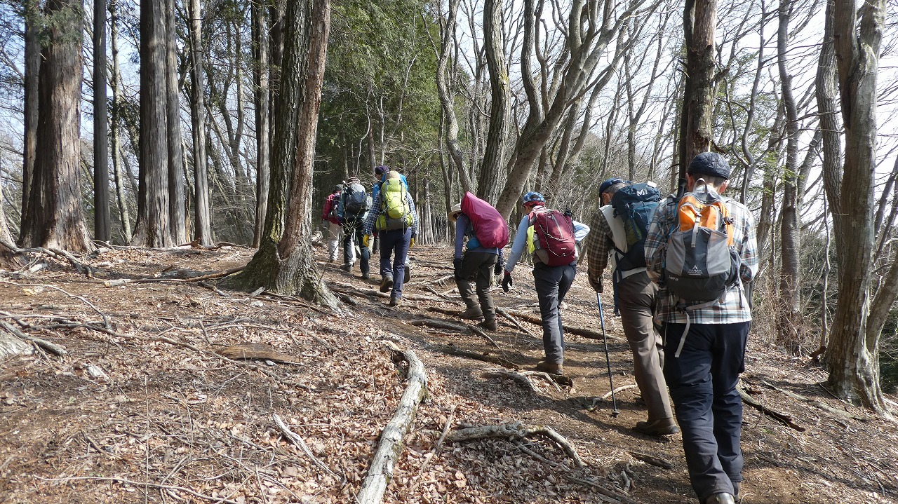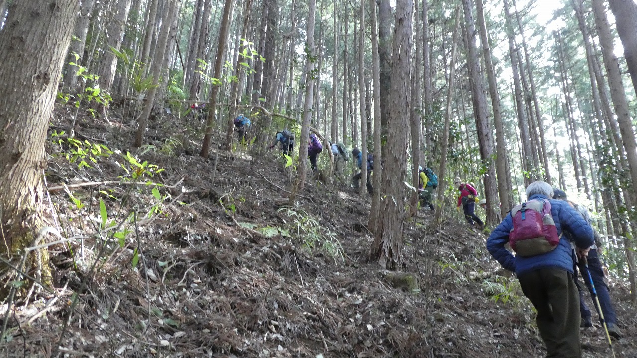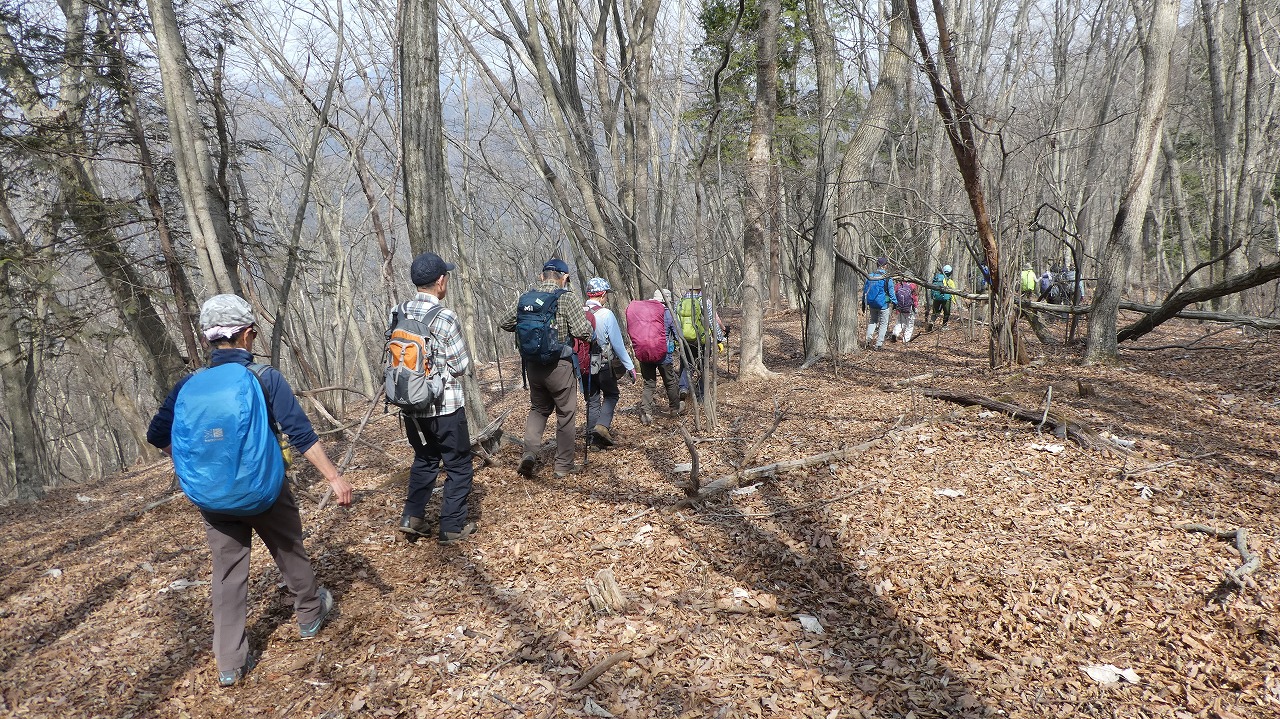 山川リーダー、スタッフの皆様、お疲れ様でした。日寄神社から破線の登りは、奥武蔵らしいうっそうとした林の中の標高差600mの急登!最後のトヤド浅間からの転げる落ちるような破線の急下降は標高差450m!どちらも自分の脚力不足でが腿パンパンになりましたが、休憩毎の美味しい差し入れ、楽しい笑い笑い声が疲れた体を癒してくれました。笹尾根縦走路からの景色は、葉の落ちた木々の間から奥多摩、奥武蔵の山々が見渡せ、この時期にしか味わえない爽快な稜線歩きでした。達成感のある楽しい山行をありがとうございました。