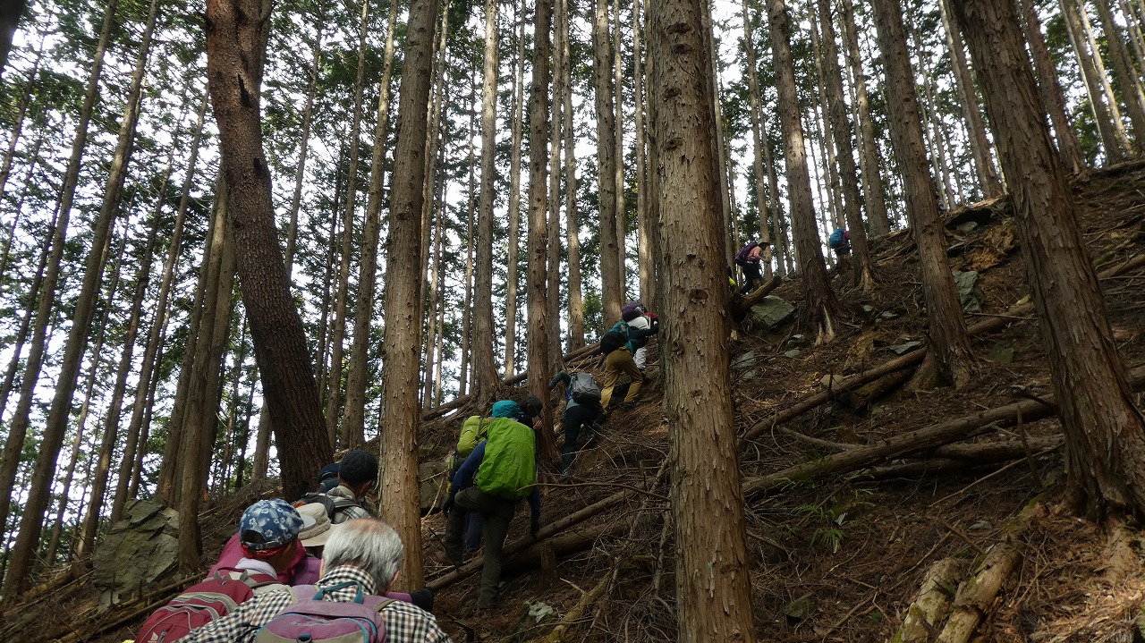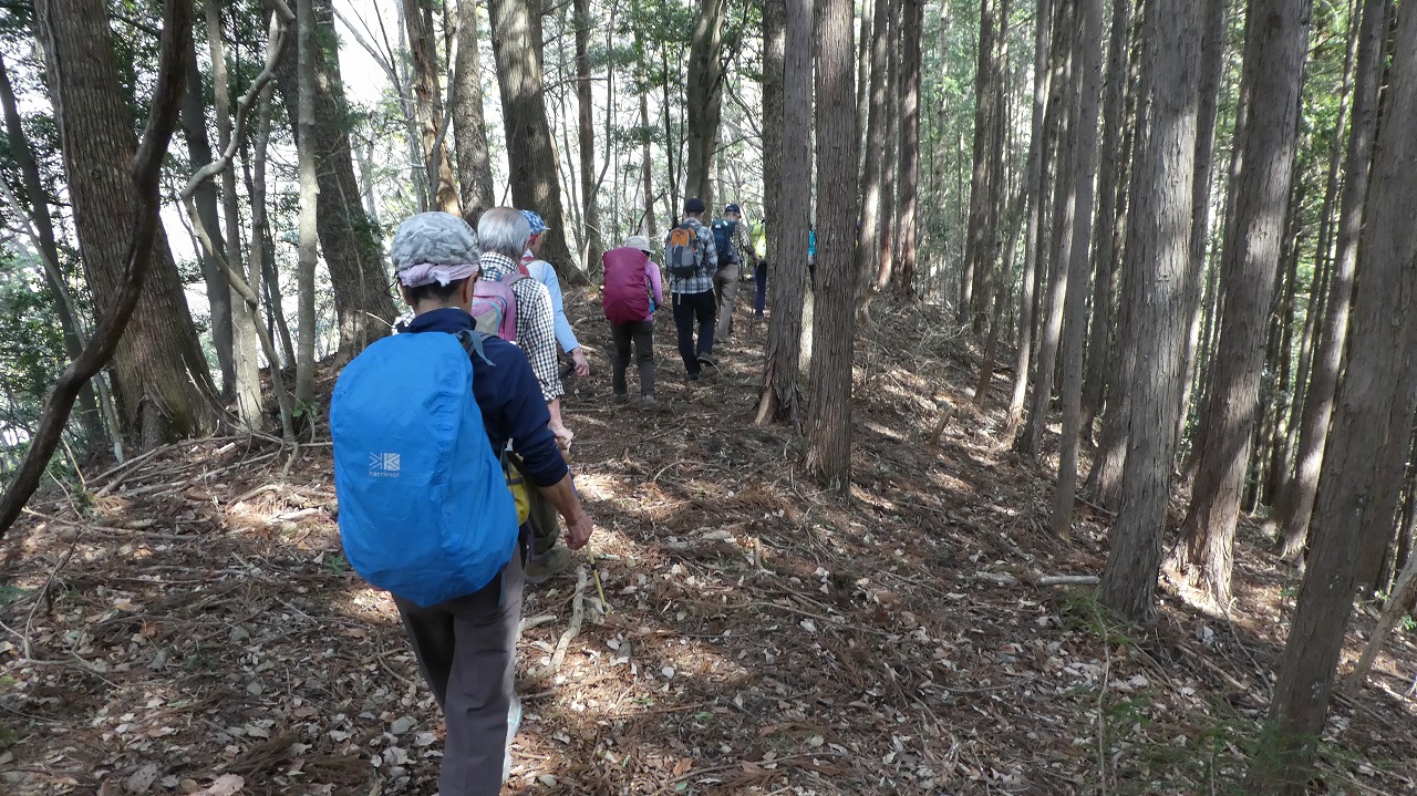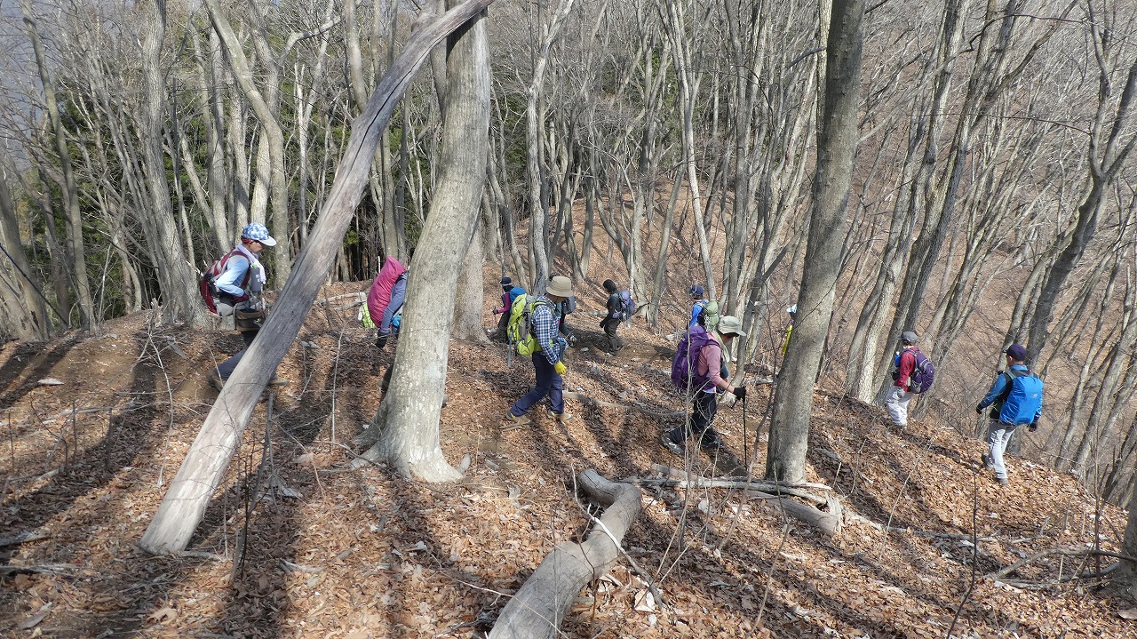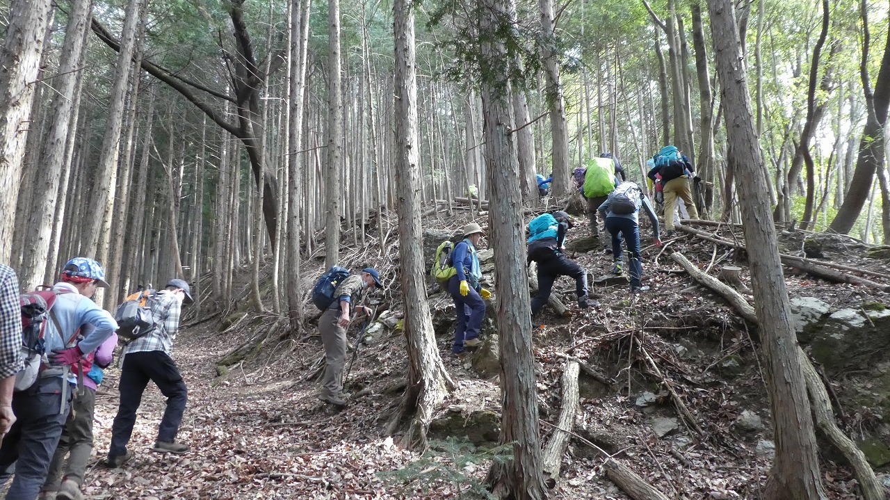 山川リーダー、スタッフの皆様、お疲れ様でした。日寄神社から破線の登りは、奥武蔵らしいうっそうとした林の中の標高差600mの急登!最後のトヤド浅間からの転げる落ちるような破線の急下降は標高差450m!どちらも自分の脚力不足でが腿パンパンになりましたが、休憩毎の美味しい差し入れ、楽しい笑い笑い声が疲れた体を癒してくれました。笹尾根縦走路からの景色は、葉の落ちた木々の間から奥多摩、奥武蔵の山々が見渡せ、この時期にしか味わえない爽快な稜線歩きでした。達成感のある楽しい山行をありがとうございました。