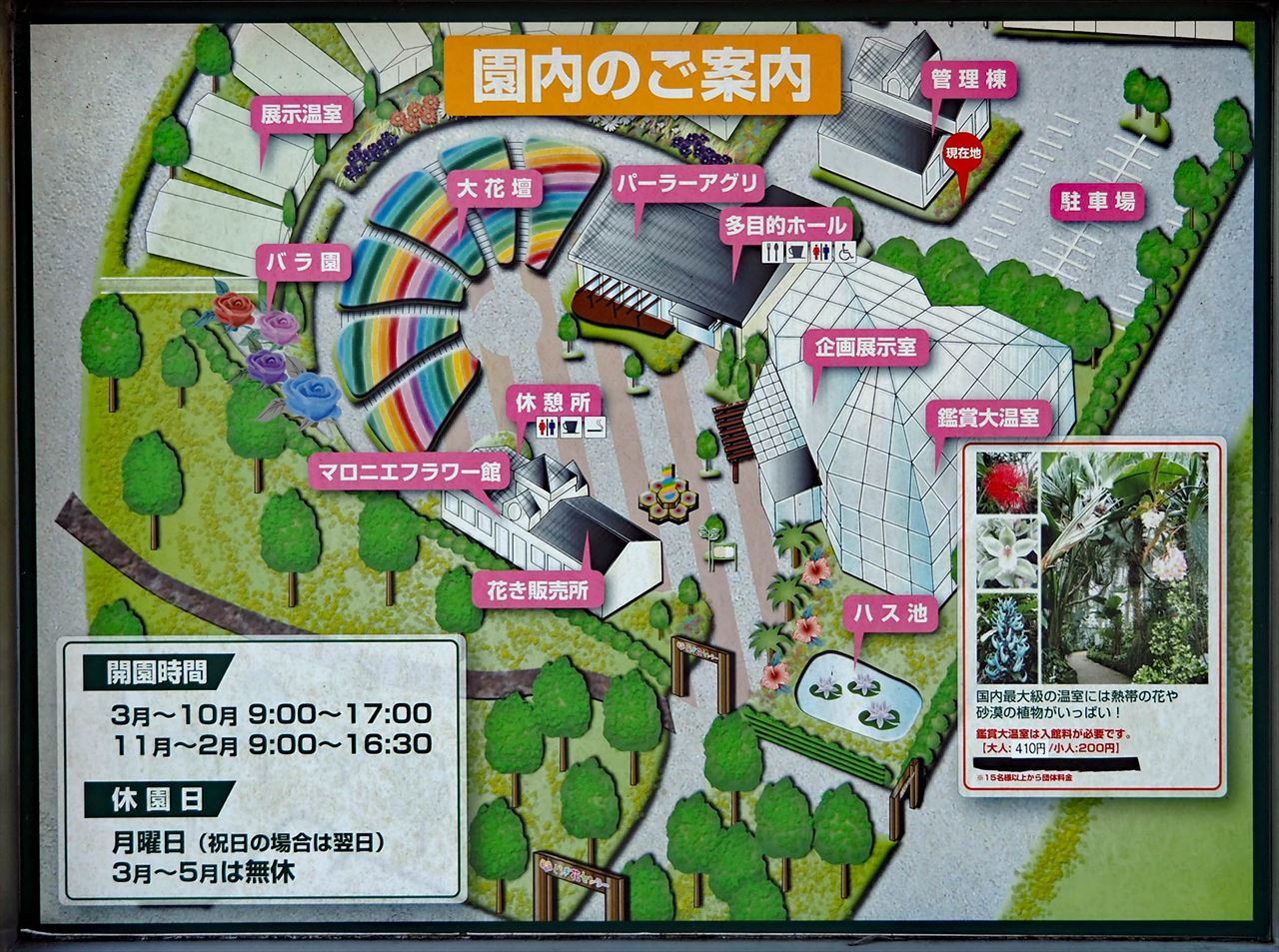 スタート地点(東口駐車場)に隣接しています。とちぎ花センター内です。