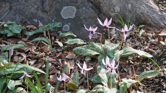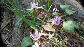 「かたくりの里」「カタクリ園」のどちらも見頃でした。青空の青龍ヶ岳の山頂で昼食後、中岳にも登りました。東口駐車場では、河津桜が満開でした。解散後、2年ぶりに、ヨシ焼きが行われた「渡良瀬遊水地」に行きました。菜花摘みをしました。また、「コウノトリ」も見ることが出来ました。多くのご参加にもかかわらず、足並みも揃い、色々な花も沢山見られ、楽しい一日でした。 柴崎実