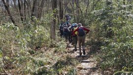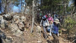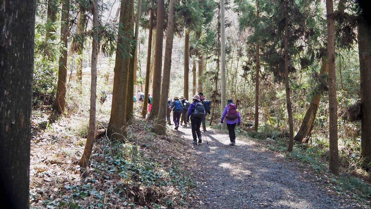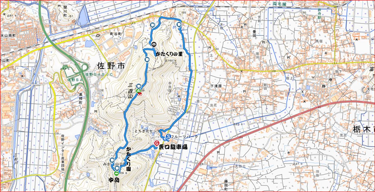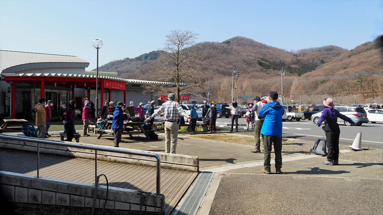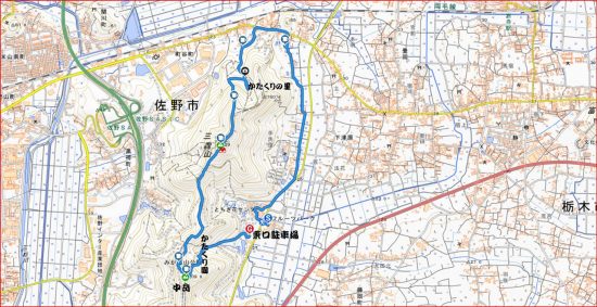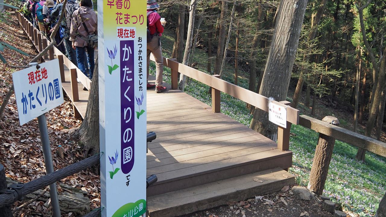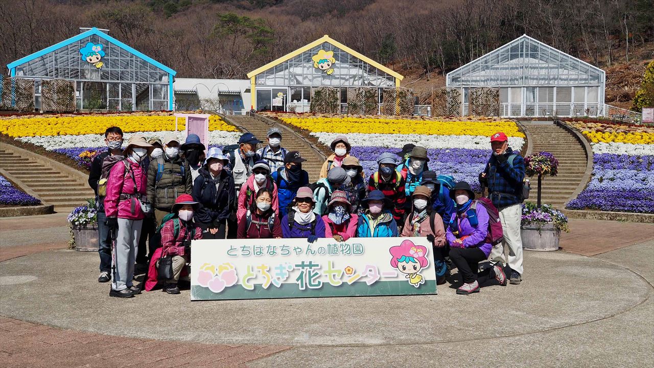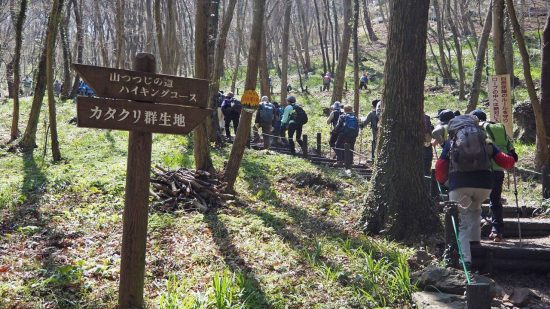 岩船駅10:00=東口駐車場10:05→とちぎ花センター10:15→慈覚大師誕生の地10:45→11:15カタクリ里11:40→青龍ヶ岳(昼食)13:00→中岳14:00→カタクリの園14:15→東口駐車場14:45