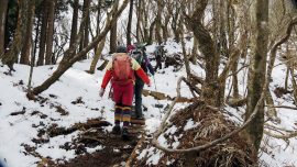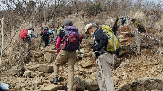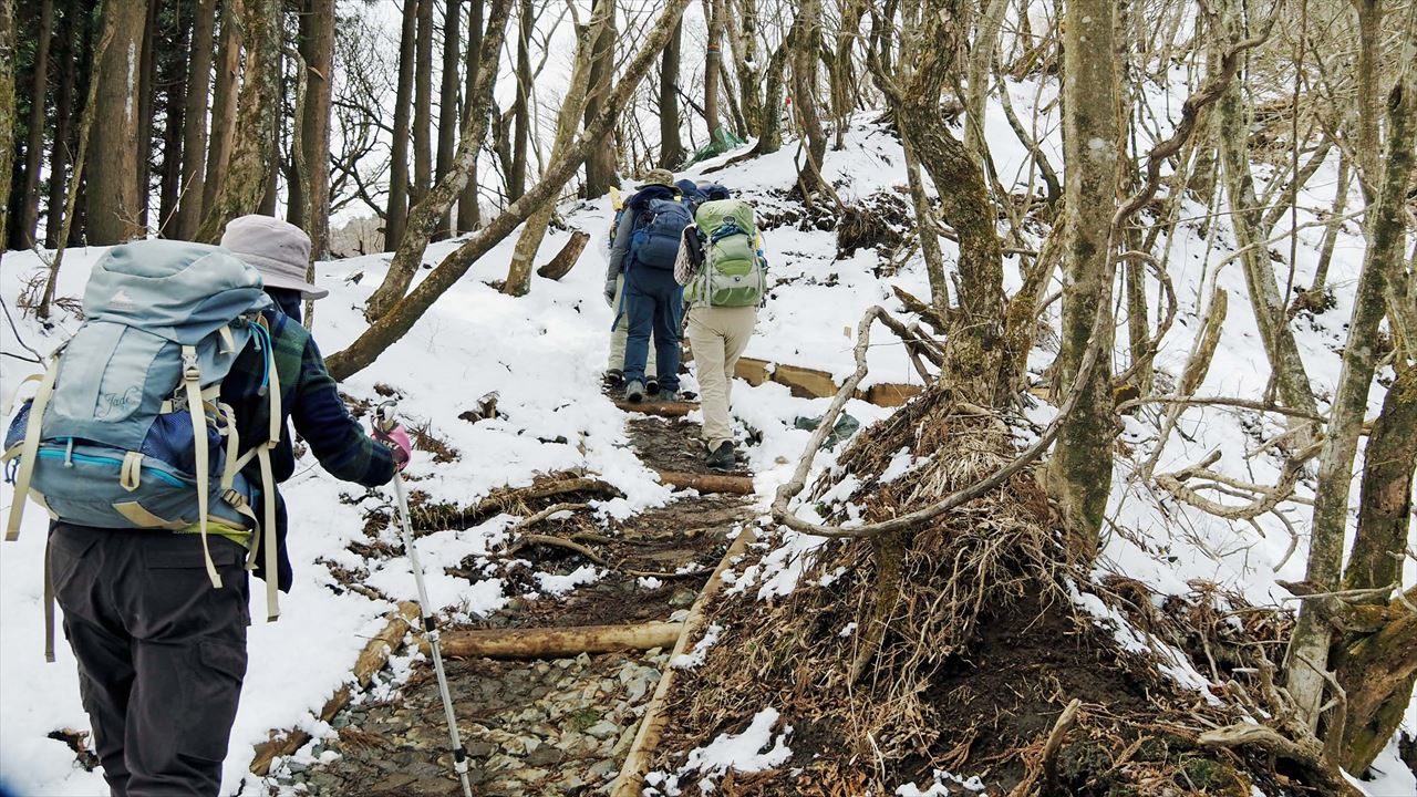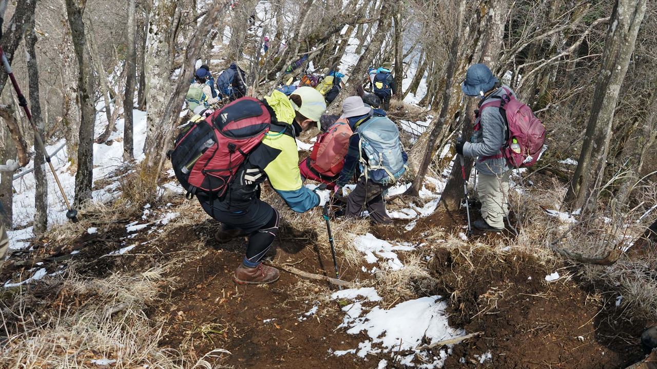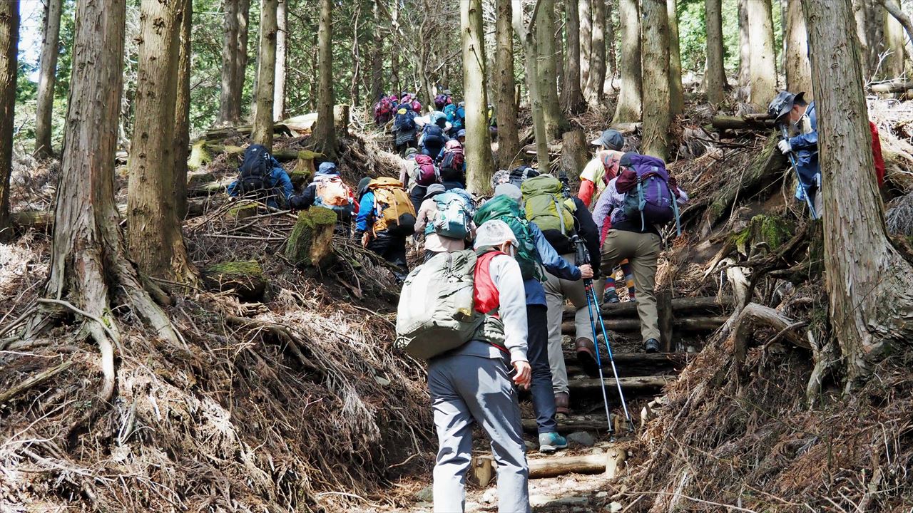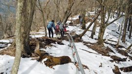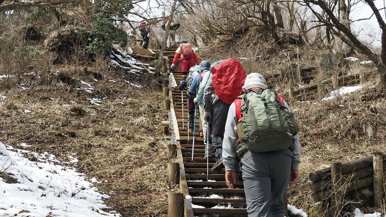 ニノ塔、三ノ塔の登山道は、木道に整備され、以前と比べると、ぬかるみが少なくなっていました。お地蔵さんからの下山道には、残雪あり慎重に下りました。ヨモギ平からボスコキャンプ場周辺は、諸戸林業の管理下にあり、事前に連絡をして通過許可を取りました。参加者の皆様、安全山行に協力頂きありがとうございました。 松木 千恵子