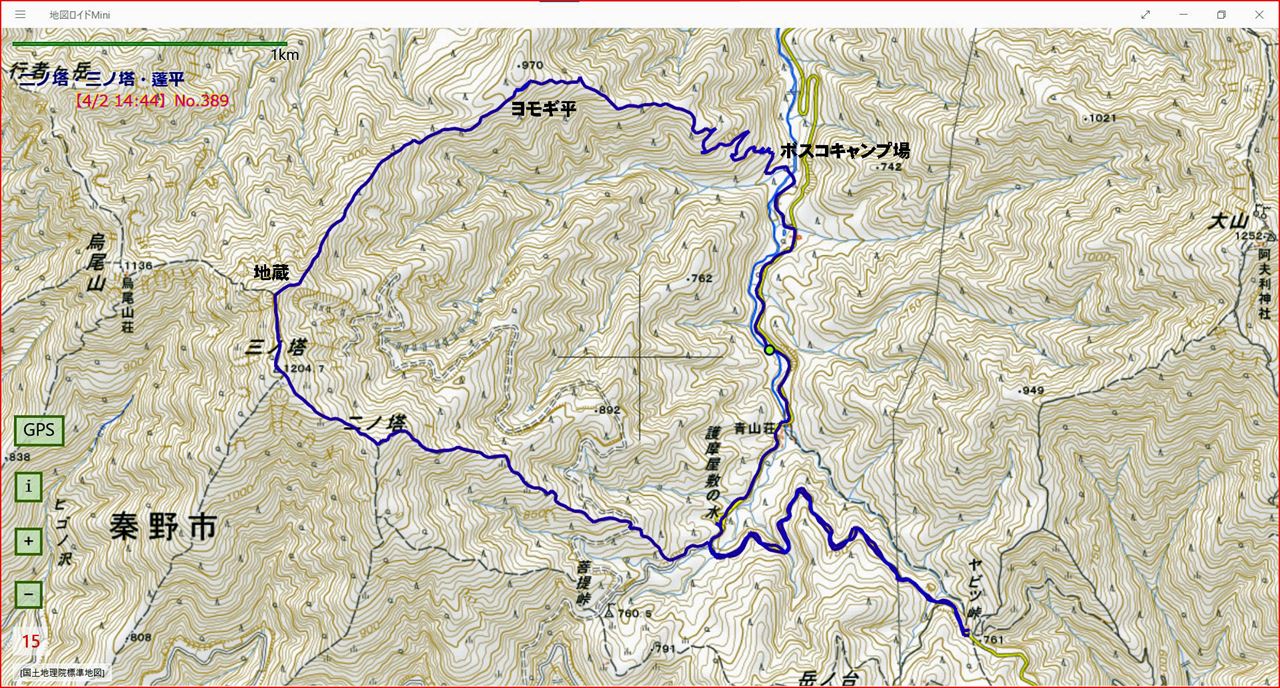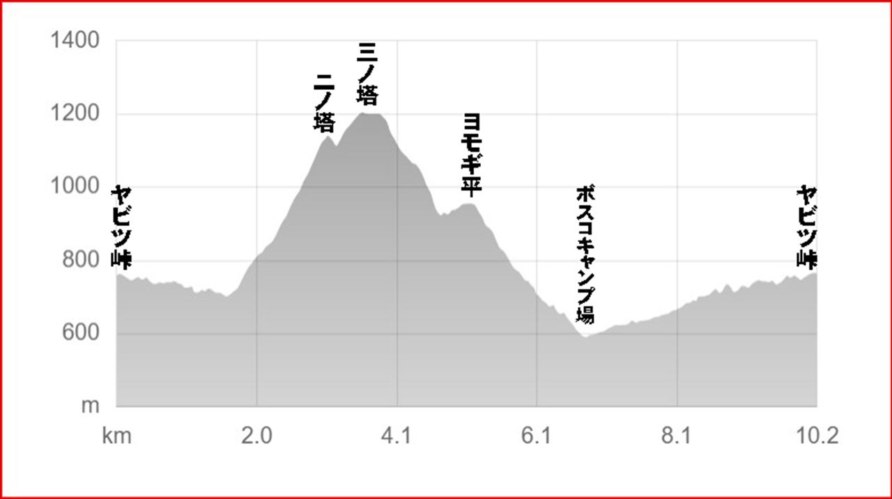 →地蔵12:40→ヨモギ平13:50→ボスコオートキャンプ場14:35→青山荘14:50→