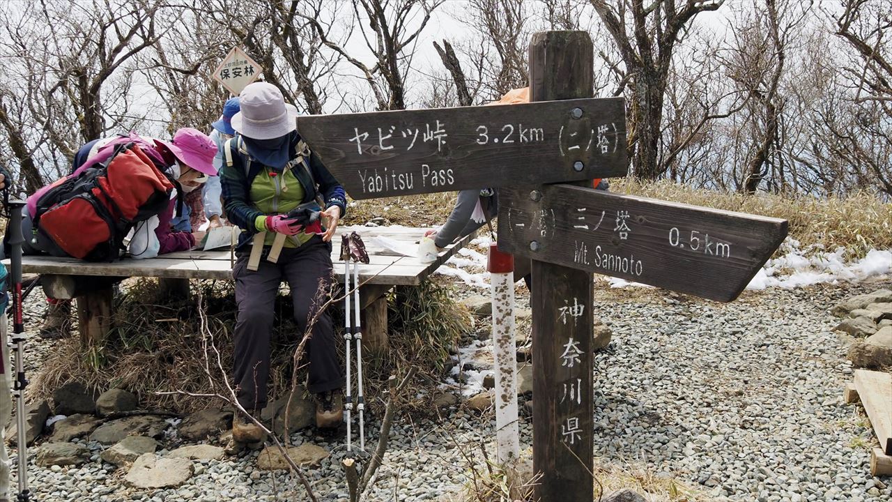 ヤビツ峠10:00→冨士見小屋跡10:20→ニノ塔11:45→11:55三ノ塔(昼食)12:35