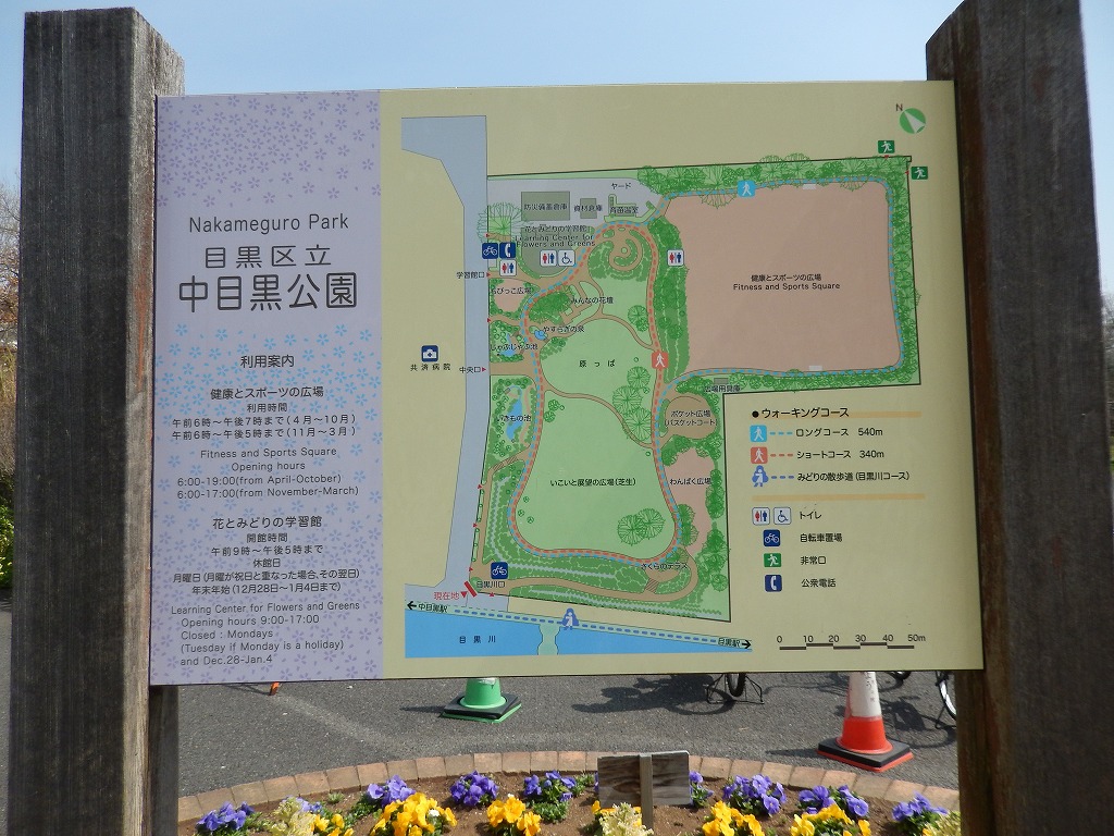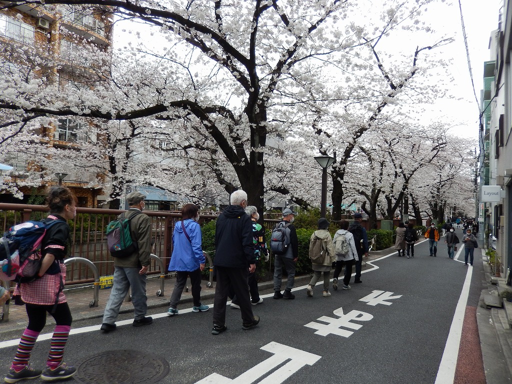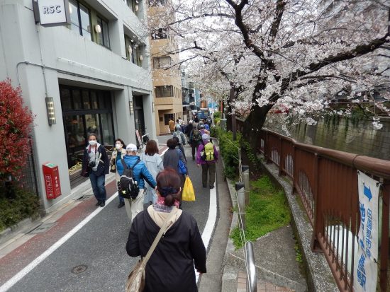 コース:田園都市線池尻大橋駅 10時集合→天空庭園→目黒川沿い歩行→目黒区立中目黒公園(昼食)→目黒川沿い歩行→目黒雅叙園(解散)→JR目黒駅