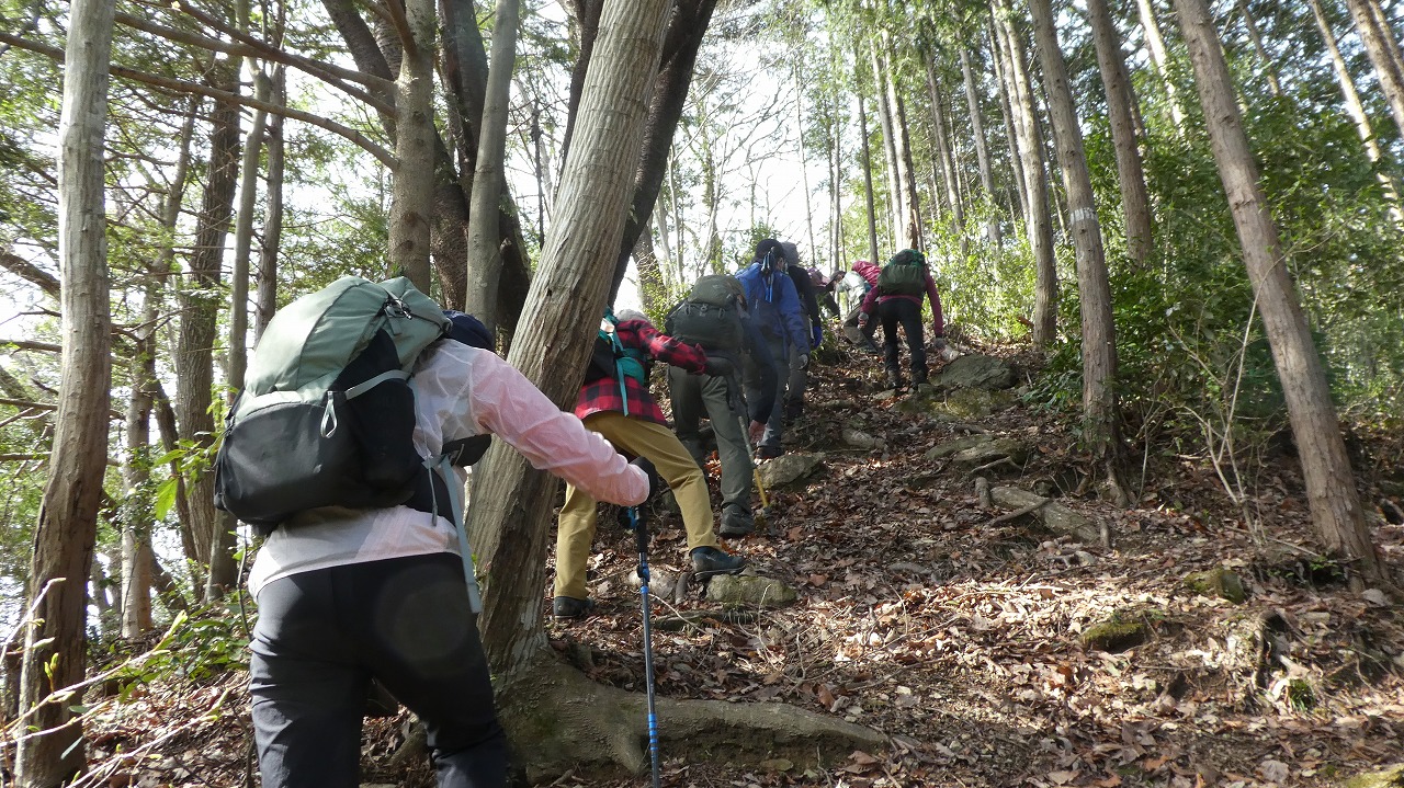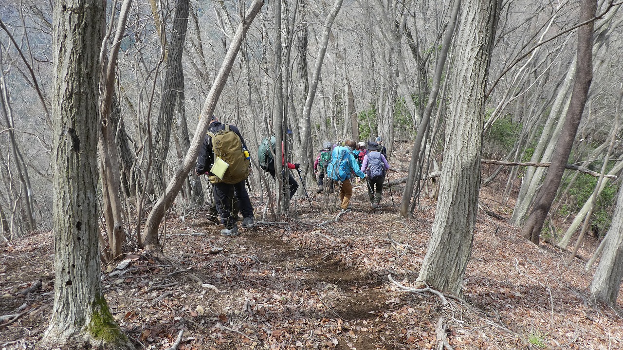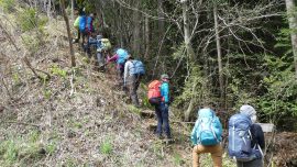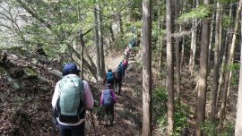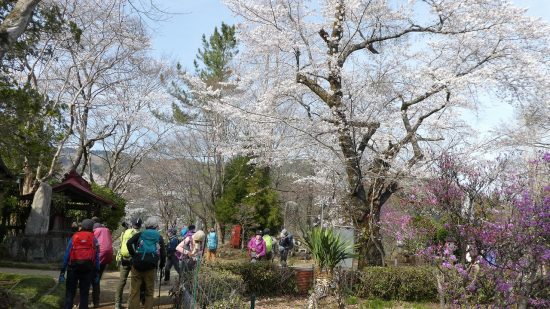 「参加者の皆様、おつかれ様でした。のっけから、倒木をまたいでの急登や、激下りもありの変化あるコースを元気にゴールしました。参加者の脚力と晴天に感謝!です。そして歩いた後のご褒美は戸倉城山からの展望と、里の満開の桜などの花々。山から解放され、みんなの穏やかに眺める表情が印象的でした。」