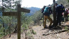 NO8鉄塔9:52ータカ見峠10:03ーモミの木峠10:20ー赤松峠10:28ー盆前山10:38ー