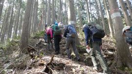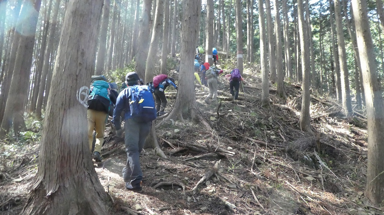 山川リーダー、スタッフの皆様お疲れさまでした。日陰本田山?昭文社、登山詳細図にはルートがのっていないので、武蔵五日市の里山なんだろうなと思い参加しました。ところが取付き点から倒木の急登をバリバリよじ登り、尾根に上がってからも急登の繰り返し。稜線からは穏やかな尾根歩き、汗で火照った体に清々しい風が心地よいです。日陰本田山からは急下降を一気に下り、その勢いで荷田子峠への急登をズドーンと登り上げ、参加された淑女さんは「凄いコースねぇ」と話されていました。バリエーション、巡視路、一般コースを織り交ぜた楽しい山行をありがとうございました。すごい里山でした!