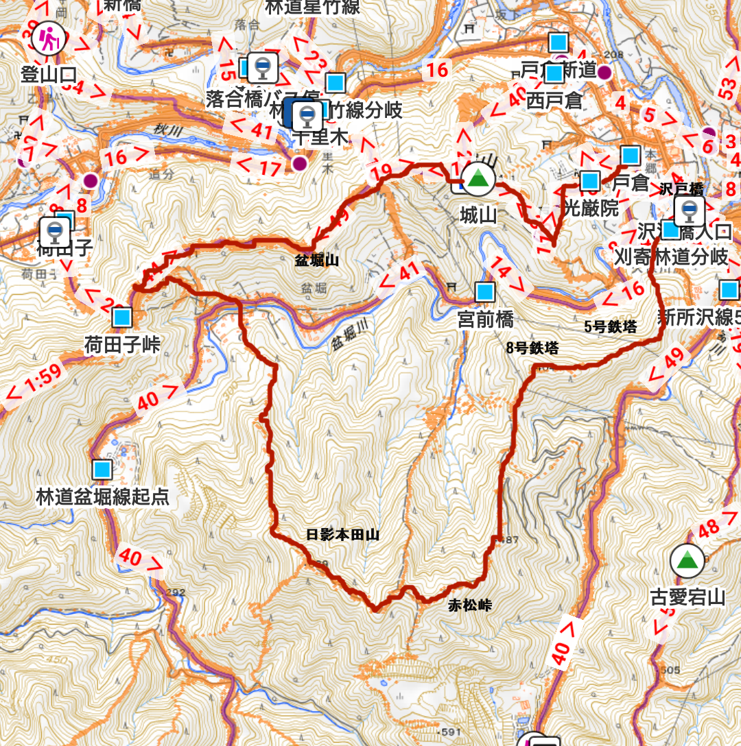 コース :武蔵五日市駅8:40-(バス)-8:45沢戸橋バス停8:55ーNO5鉄塔9:25ー