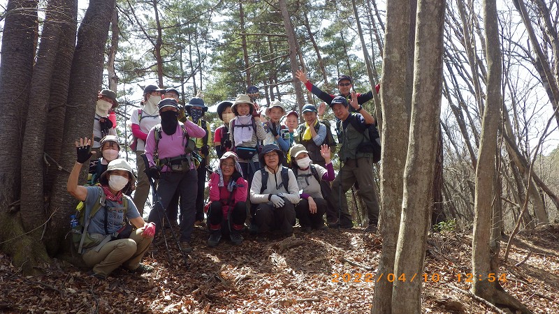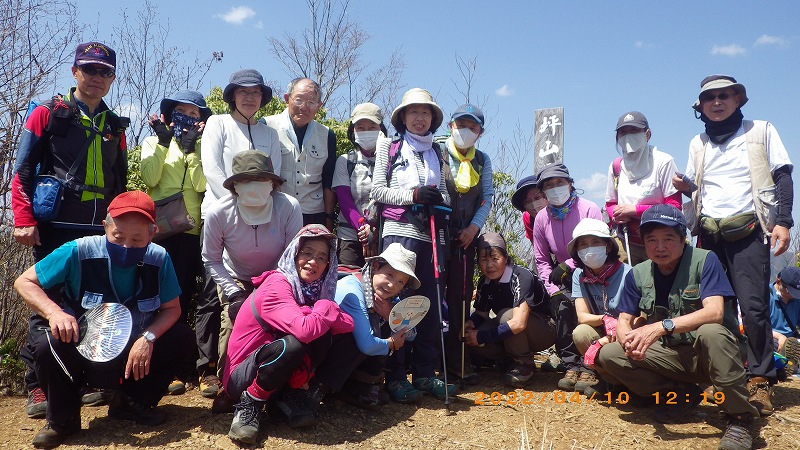 谷澤リーダー、スタッフの皆様、お疲れさまでした。登山口から一気の急登を所々のお花見タイム、余裕のペース配分で引っ張って頂き、何とかついていけました。山頂は山名の由来から一坪くらいでしたが、周りは遮る木々はなく、360度のパノラマラインに清々しい風が吹き抜けます。下りのルートでは、リーダーのワンポイント教室があり、ユーモアを交えたお話に花が咲きました。楽しい山行をありがとうございました。