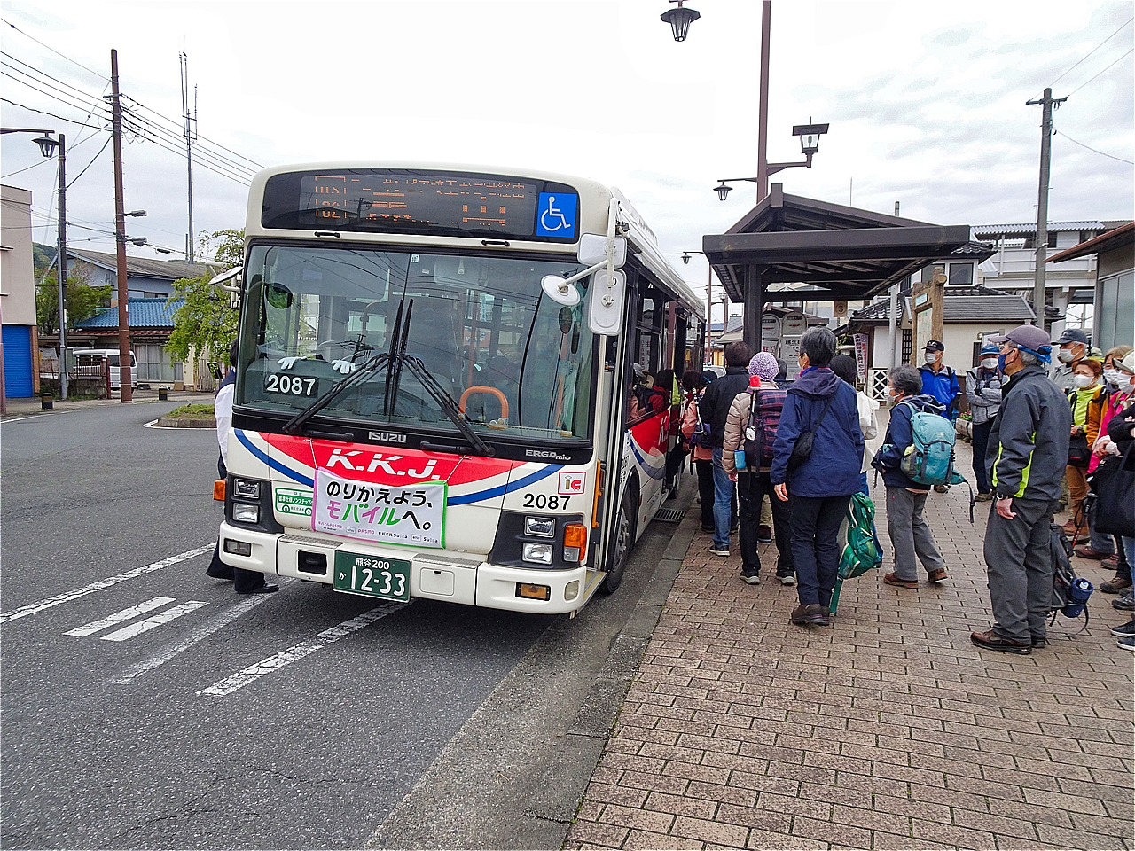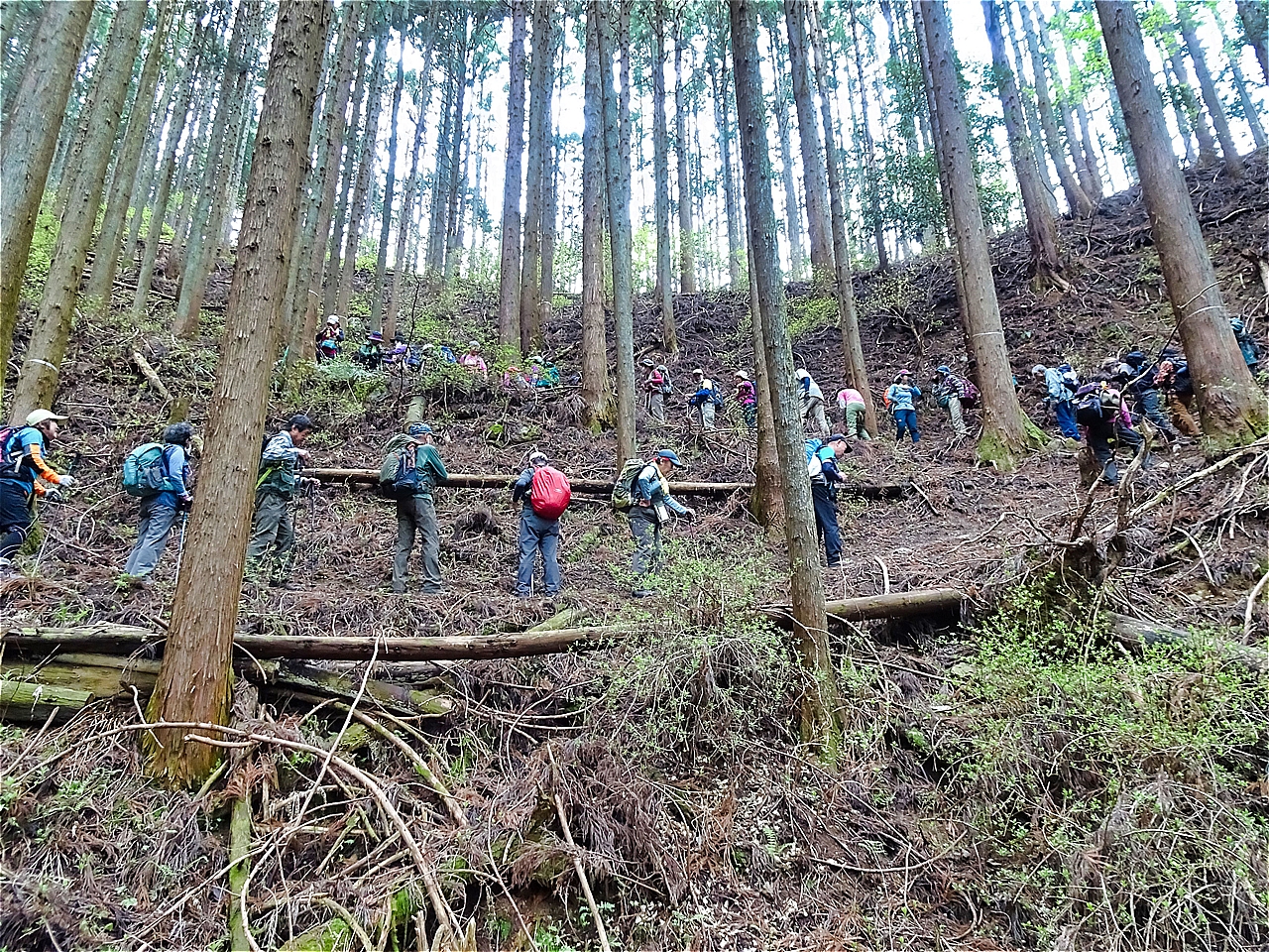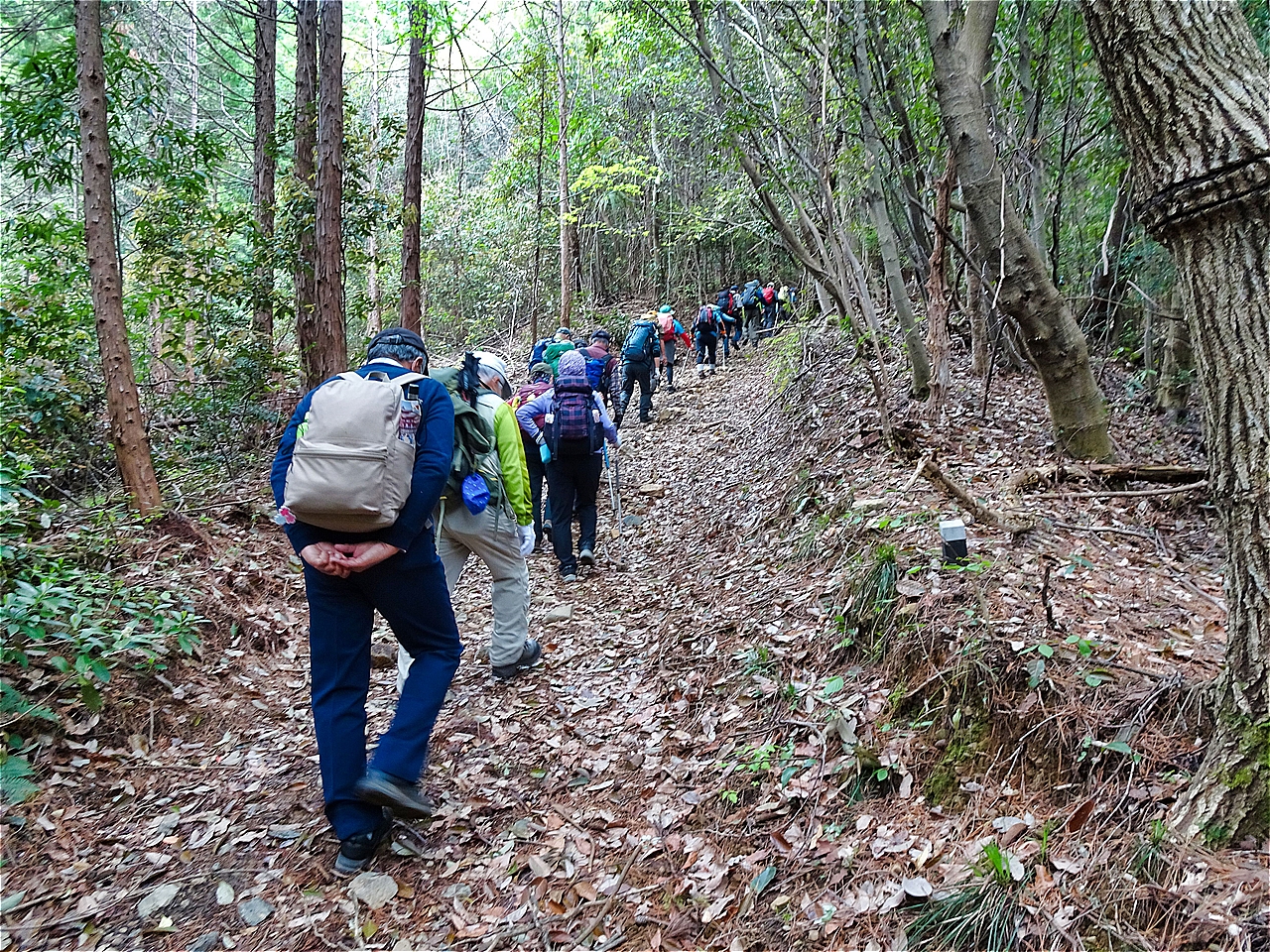 | 越生駅西口バス停 | 横吹峠、4班に分けてスタート | 急登 |