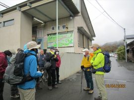 ▼コース :禾生駅9:40→落合水路橋9:55→愛宕神社10:15→池の山分岐10:50→天狗岩11:20→富士見平11:30→九鬼山11:50(~昼食12:20)→紺屋休場12:45→馬立山13:50→菊花山15:05→秋葉神社15:40(解散)