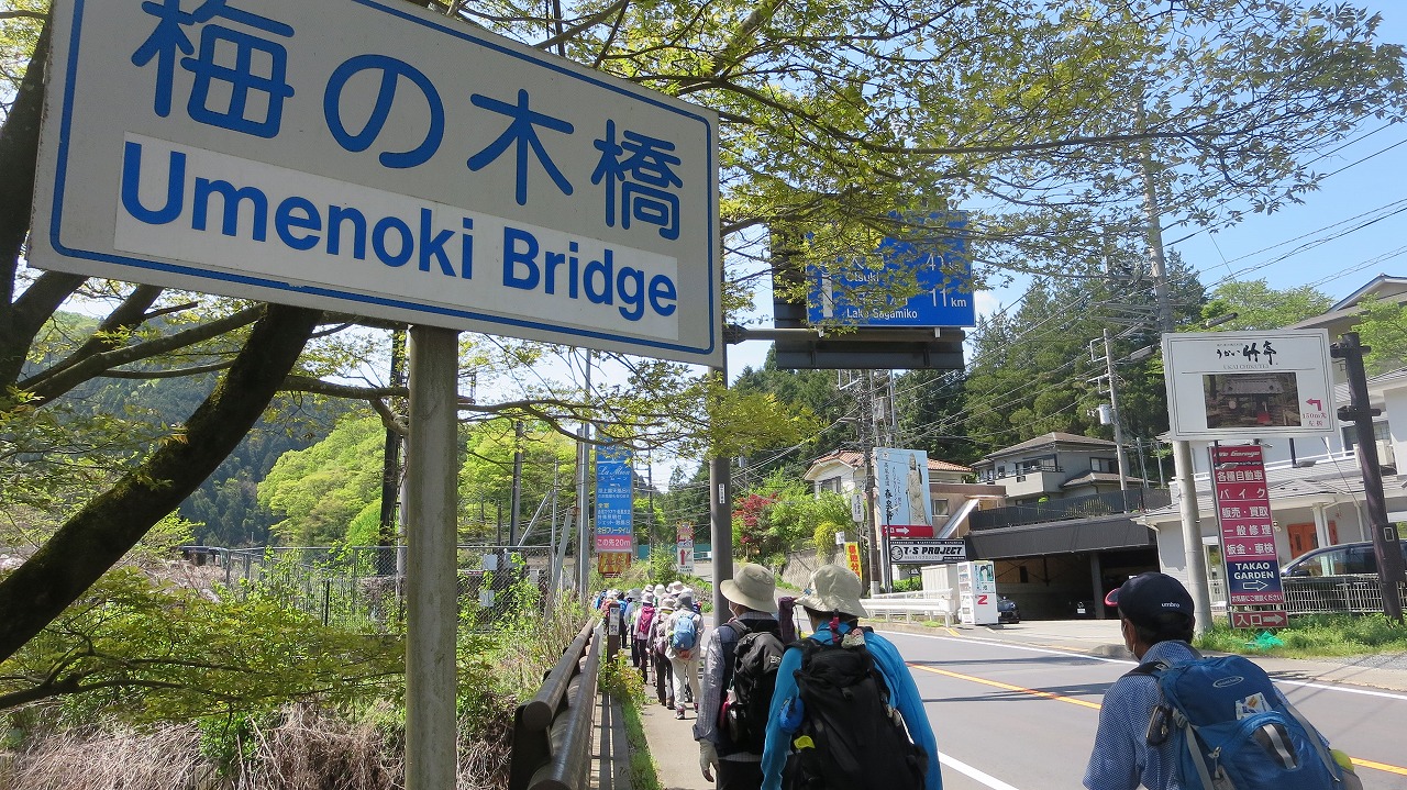 高尾山口駅前の「甲州街道」を渡り 梅の木橋 を過ぎて