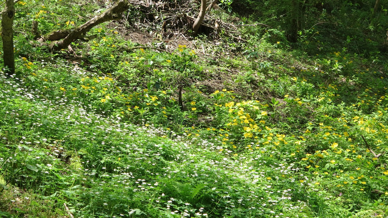 クマガイソウ、山吹草、二輪草等春の花々の群生と見頃に出会え、新緑も楽しみながら、ユックリ登りそして下った。特に花々には十分に時間を取って楽しみました。無事に終了できましたことに参加L、協力者そして皆さんにに感謝します。ありがとうございました。平沢記