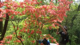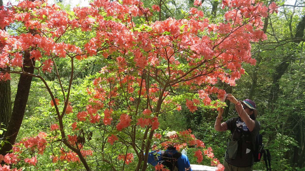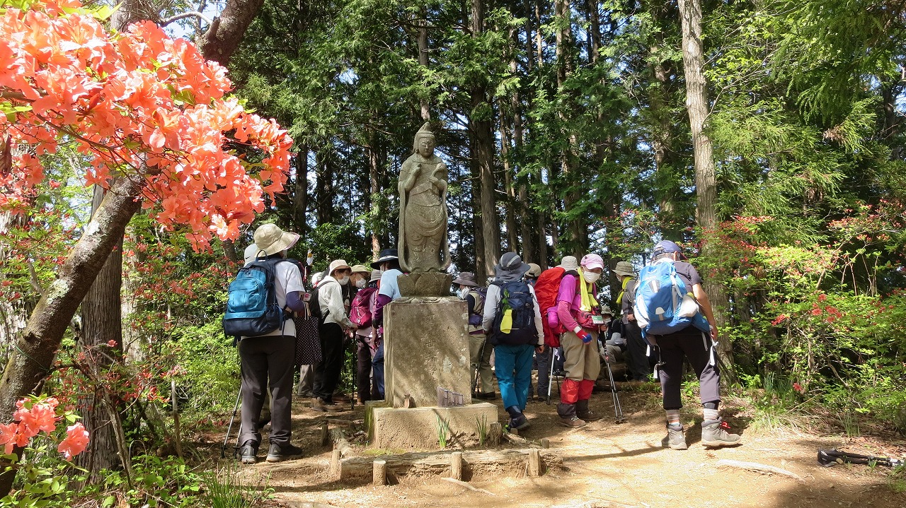 聖観音像が鎮座する中沢山頂上に満開のツツジが彩を添えた