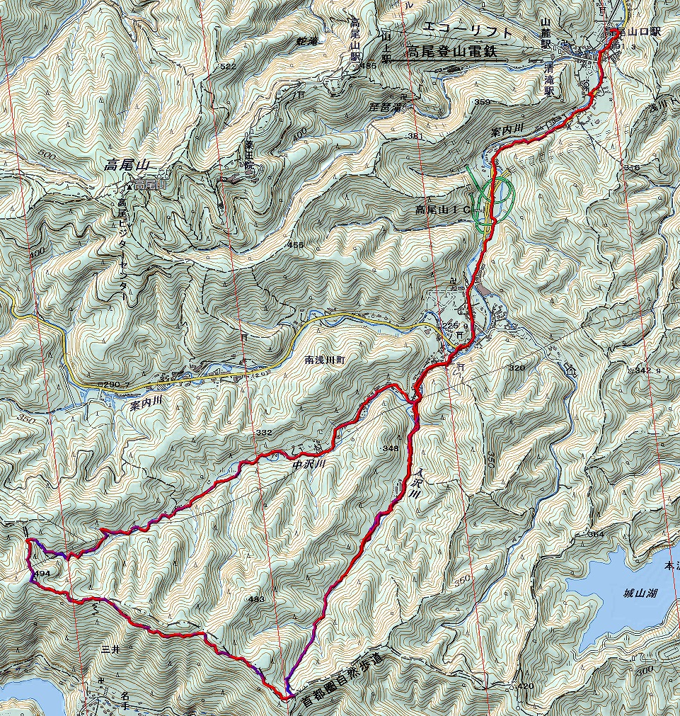 ▼コース:高尾山口駅前9時45分1→梅の木平バス停10時20分→新中沢橋→西山峠(昼食)12時10分~13時→入沢山13時10分~15分→中沢山(峠)13時55分~14時10分→うかい鳥山P→高尾山口15時50分