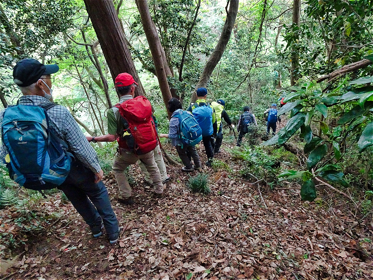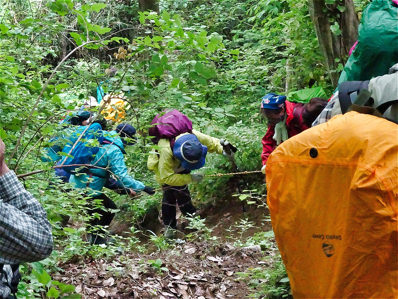 小泉リーダー、参加スタッフの皆様、お連れ様でした。当日は午後から雨予報でしたが、雨雲レーダーに合わせたようなペース配分で、本降りになる前に下山できました。急登あり、急下降ありとコンパクトな里山に重い空気が次第に纏わりつき、木々の緑の彩りがかわっていきました。たどり着いた横沢入の湿地では、オタマジャクシが迎えてくれました。とても楽しい山行をありがとうございました。