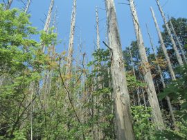 山行から一週間も経ってしまいました。お元気ですか?今回の刈寄山は天候にも恵まれ素晴らしい展望に出会うことが出来ました。その壱 舟子尾根の分岐で伐採中の尾根から奥多摩方面の展望。その弐 刈寄山近くの峰に立ち枯れた数十本の立ち枯れた杉の木を覚えていますか?8年ほど前にあった山火事の跡です。その峰から市道山の尾根の展望。しかし 私は水1リットルほどしか持たず少々脱水気味でフラフラしていました。解散の広徳寺に着いたときは内心ホッとしました。水は大事です。健脚の皆さん、リーダー皆さんに感謝です。