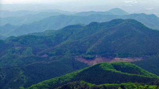 山頂からの眺望。少し曇っていたのではっきり見えない。綺麗に晴れれば360度の展望