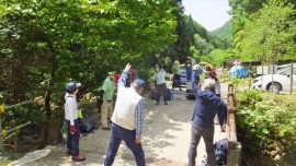 足並みも揃い、参加者の皆さんのご協力で無事、登山口に到着。ご協力ありがとうございました。柴崎実